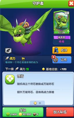 亲爱的召唤师们大家好呀!又到了我们的英雄档案时间了,这次给大家带来的英雄是7段钻石解锁的守护者,接下来看看它会给我们带来怎样的表现吧。 【英雄介绍】绿色阵容的守护者,它是大自然的守护者,手中掌握着巨龙的财宝,在战场上它会毫不吝啬地为盟友们提供补给,绿色的身形让它与自然融为一体,背后的宝箱里装着大量补给。传奇品质的守护者,初始等级为1,基础战力为6,每提升1等级,提升的战力为2。守护者的升级