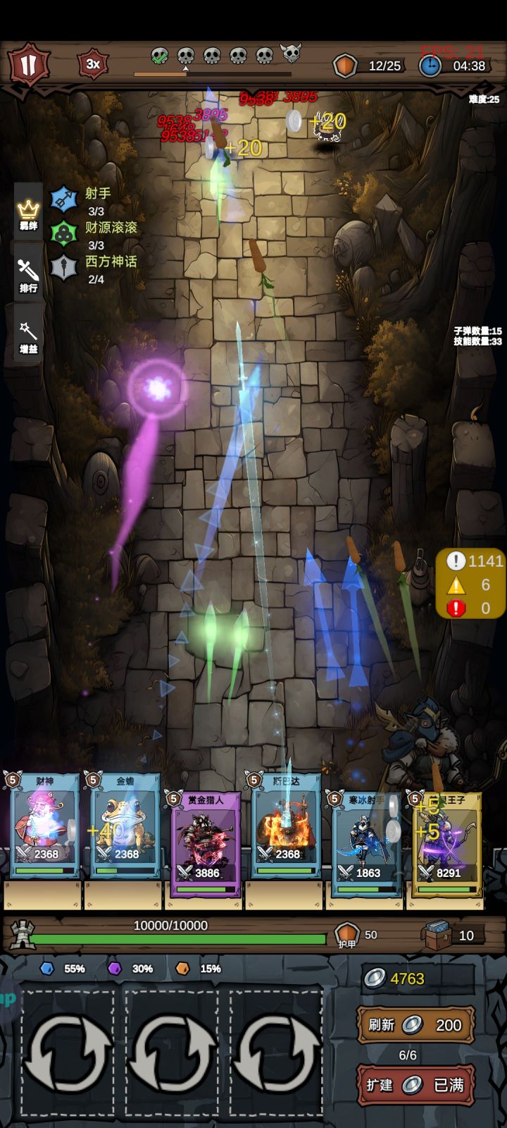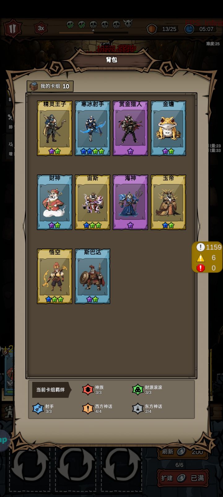 目前来说,卡组1和卡组3是可以稳定打到59关的,60关需要一点运气,周一随机2个适配英雄,玩卡组1的话基本都是给3血族,卡组3是主打一个下限,但上限很低,卡组2这套主要是拿来过主线用的先说说主线吧,最稳定的一套打法还是财源射手+4东方3财标准开局:财神和金蝉可以直接拉5,看你卡牌怎么来,不要硬刷,没有就算了,然后慢d满星3财源(不拉满第十关过不去)人口拉满以后再第15关BOSS打完之后直接换(