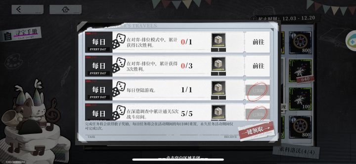 打了两局深渊调查,一共就遇到三个用餐点,普通怪和精英怪的击败的用餐点都不算,这一周能做完有鬼了