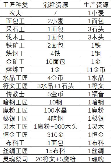 个人整理首先这是我们熟悉的工匠生产表格根据这张表格,加上一些玄妙的操作,我们有以下数据..感兴趣的话可以思考了解一下计算过程(可能有误,还请斧正)不感兴趣的话直接看红色那一列即可[国际版的看蓝色那一列]表格数据是在充分利用工匠资源零浪费的前提下计算得到关于零浪费:工匠分配界面右下角的各个数据没有负值,如果有负值,保证库存的资源足够被消耗,一旦库存的资源不够工匠消耗,就会出现浪费.结