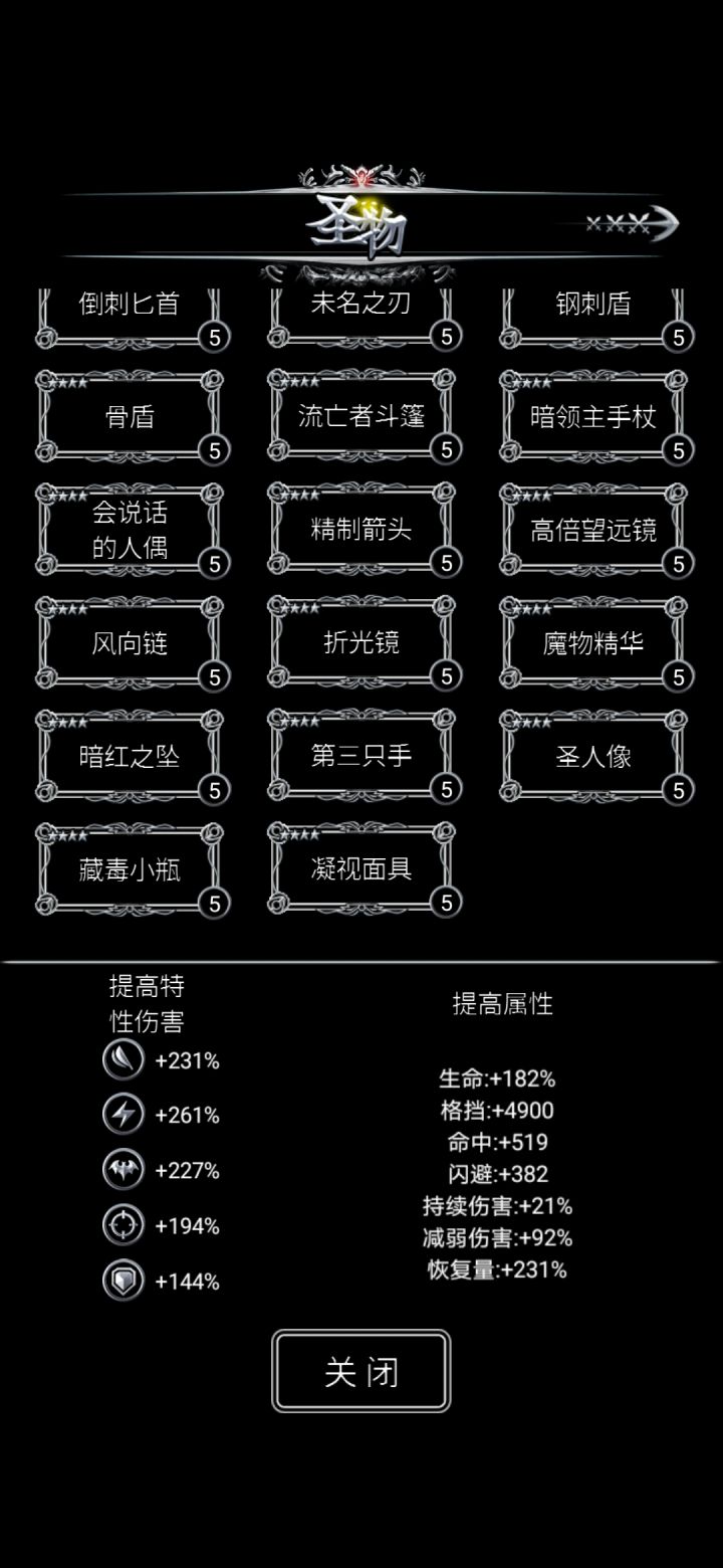 成就天赋圣物刚好9张图……🤔炼金需要毅力,运气也是实力,竞技场还得别放弃🤪天赋大部分是成就奖励,早期的几个基本要花钻石,后面可以肝传说天赋(初级到传说一个要100多万😅),先发制人没话说,打怪超爽,领地白给……圣物前8个是打败图11BOSS开启渥金神像时商店里蹦出来的,平均50w金币一个,不过过图奖金够买挺多的😂接下来的四个是图一图七图9图11的四个隐藏副本最终BOSS掉落的,难度一个比一个高,最后一个BOSS月神还没肝😭剩下的四星圣物就需要去网上搜索了,很容易就能搜到,建议材料攒多一点,连刷圣物的感觉很不错~😏