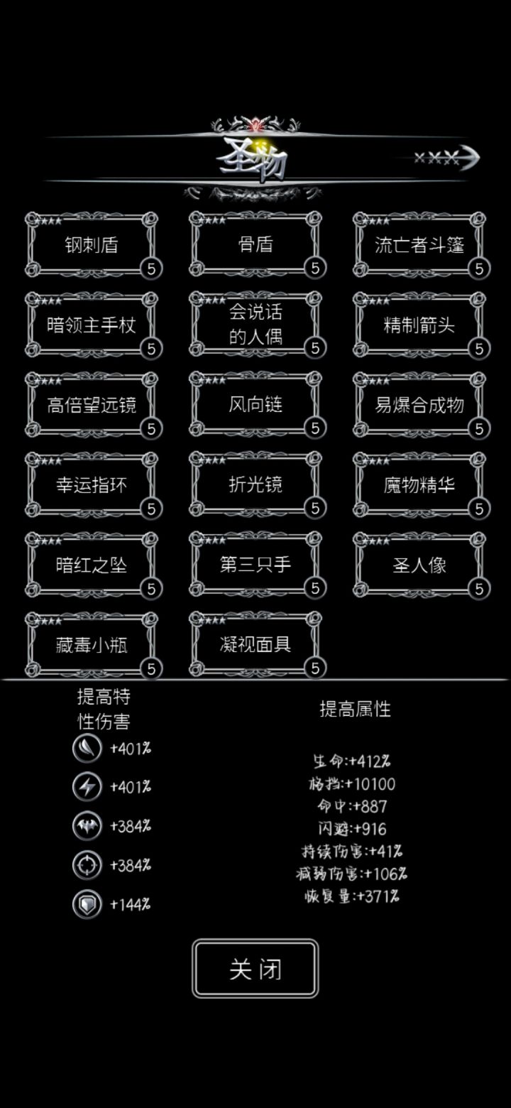 兄弟们,发现个事,去网上搜了下,发现我圣物没搞满,按理来说5个类型的兵种还有命中和闪避应该是一样的,我是不是漏了什么四星圣物没搞啊,大佬帮帮我😅😅😅