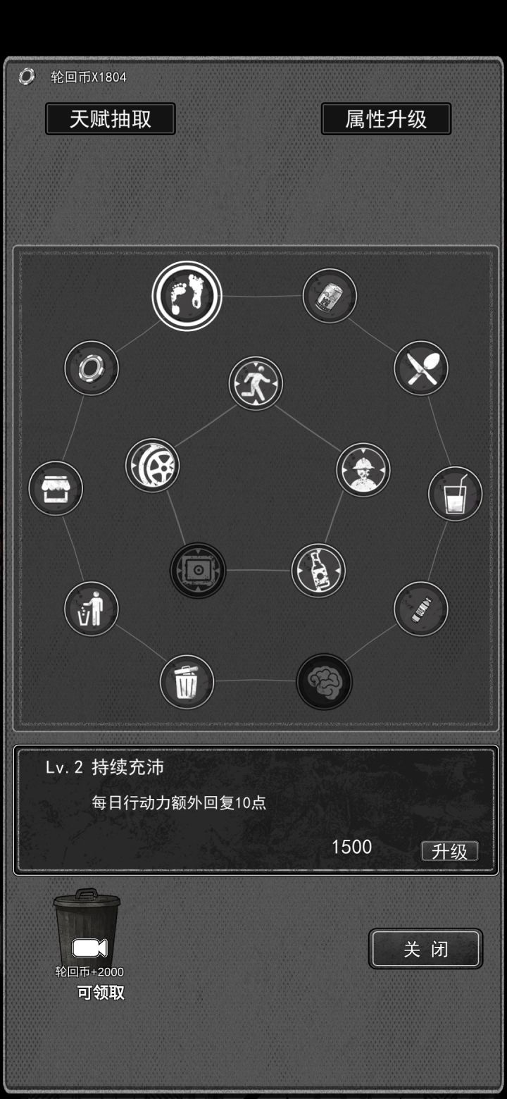 天赋点优先点行动回复,行动上限,开宝+1(这游戏没个几轮回升级天赋,攒不够)开局天赋,尽量刷出来黑市折扣,调虎离山。每天捡宝,看黑市。捡宝屯废品,物价高的时候卖出去。黑市有折扣力度大的东西就全买。可以用,也可以卖。开局天天用手机搞代写,迅速挣满1000,交了第一次金额,再迅速挣满1000,现在目标就变成了升级属性。先盯住一个升,天天去健身馆 去旁听。剩余行动手机上继续升。升高了就去美容院 全