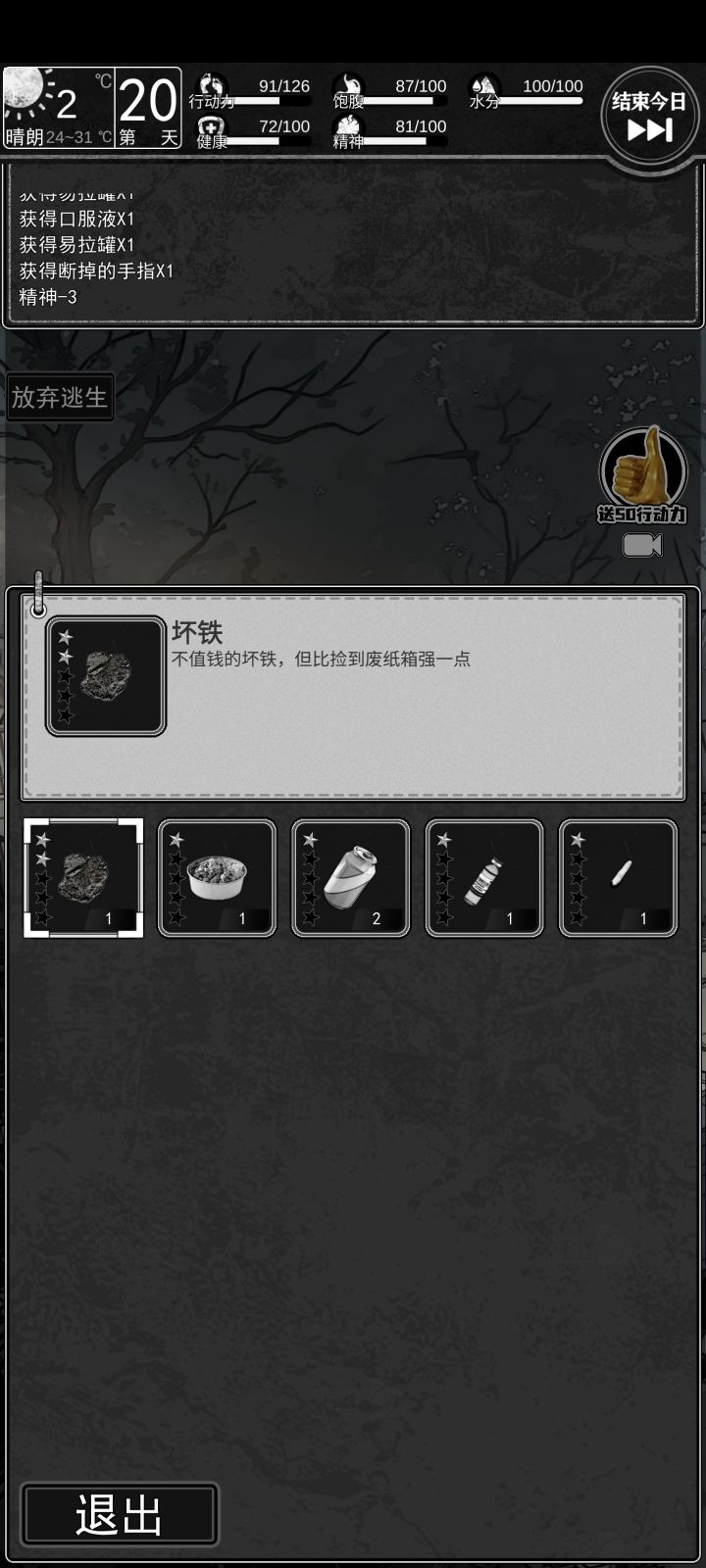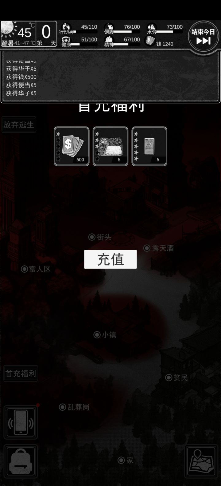 嗯呃,月卡党只能领到第一天的100块钱,商店显示你你的物资有很多,但是实际上你没有,我就经常犯这个,很冤种的毛病,我一直以为我有一堆,实际上一看我一个药没有。