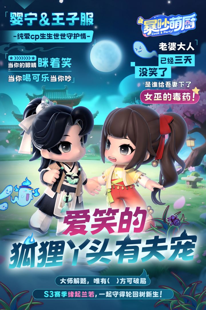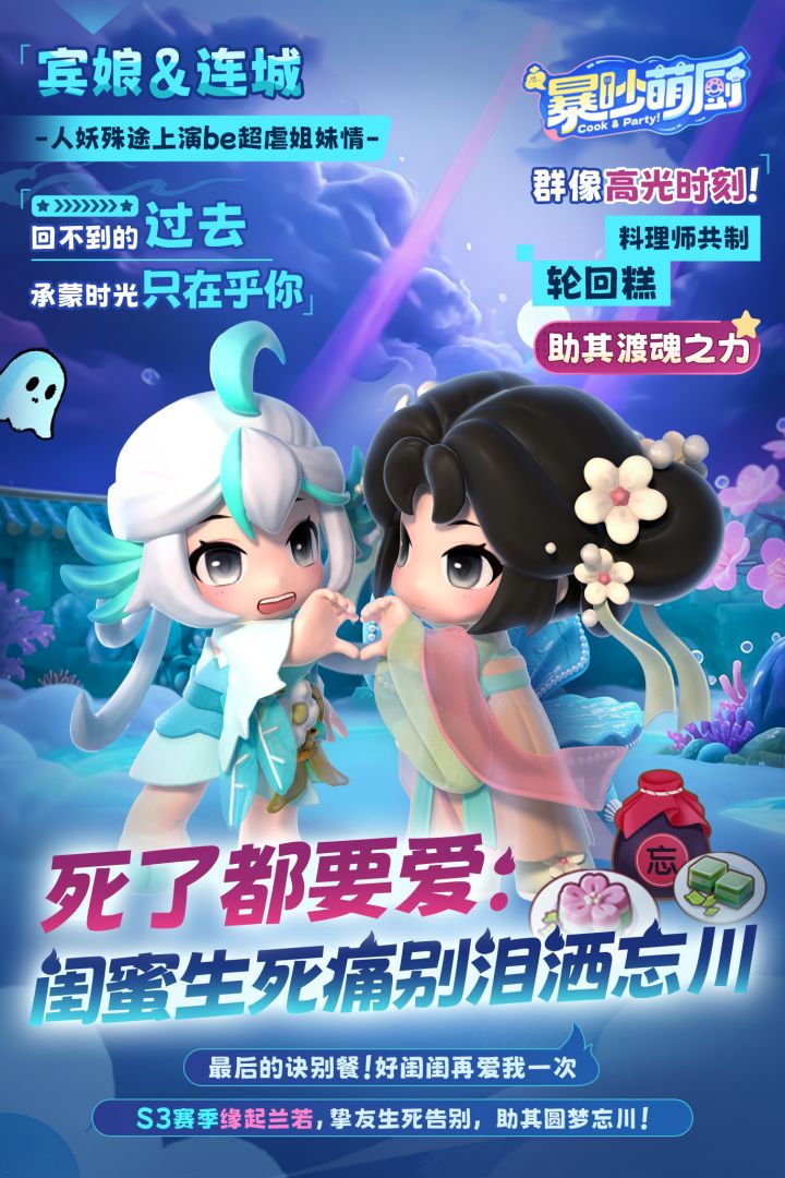暴吵萌厨S3赛季「缘起兰若」明日上线,赛季先导片今日发布! 萌厨小分队空降聊斋世界,见证聂小倩、宁采臣跨越阴阳之隔的深情羁绊。58关主题关卡开启你的聊斋冒险之旅,2 种休闲副玩法解锁轻松乐趣时光,更有丰富赛季活动,等你来厨! 8月19日,和你的厨搭子一起进入聊斋世界,在厨房冒险中冲破重重阻碍,圆满完成婚宴筹备吧! 欢乐厨房派对手游《暴吵萌厨》S3 赛季「缘起兰若」明日开启,即刻登录游戏,开启这