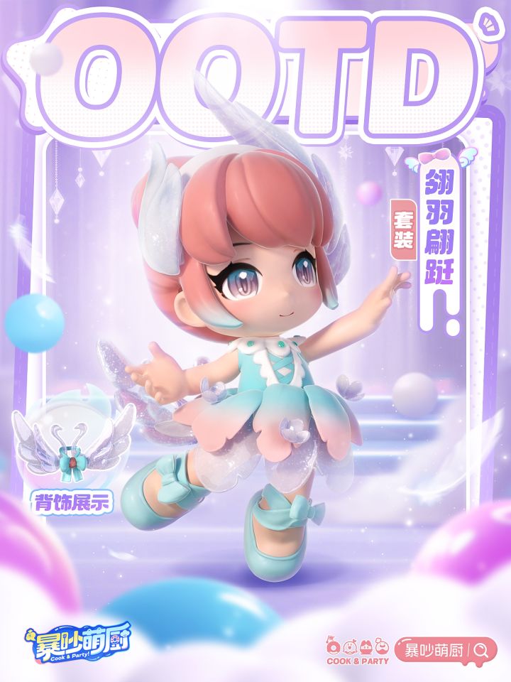 ✨至臻扭蛋 时装展示✨虹光流转,白羽轻旋。9月11日起,至臻时装「翎羽翩跹」即将上架扭蛋机活动,全套外观部件包含:发型、衣服、鞋子及背饰。收集后可于商店内兑换异色款「翎羽涟漪」、「翎羽夜色」。🌈欢乐厨房派对手游《暴吵萌厨》,即刻下载游戏, 来料理王国一起开厨!#暴吵萌厨 #暴吵萌厨时装