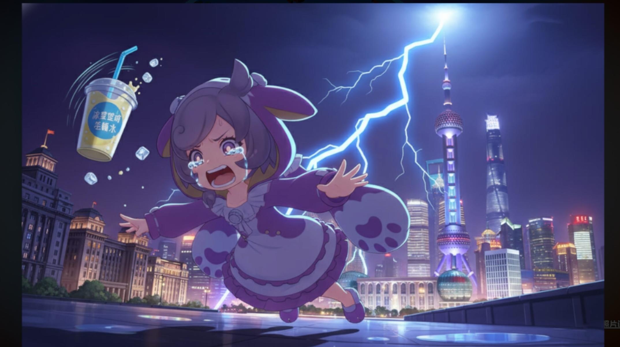 我家雪奈在上海遭罪了啊! 刚收到雪奈从上海寄来的照片,直接给我笑喷又心疼坏了。你看这小家伙,穿着紫乎乎的小裙子,哭得眼泪鼻涕一把抓,手里的蜜雪冰城都飞出去了,冰块撒了一地,背后东方明珠还劈下来道闪电,合着在上海喝蜜雪冰城真能被东方明珠雷劈啊? 咱也不知道这小丫头是先嘴馋买了冰饮,还是先招惹了魔都的“雷电法王”东方明珠,看她那张开嘴嚎啕大哭的样子,小短腿还蹬着,生怕跑慢一步再挨一下。明明是出