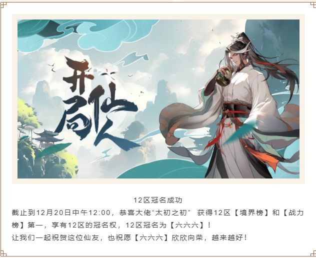 亲爱的小伙伴们,大家早上好,小玖在这里对后续新区规划的调整进行一下说明~(该调整于1月13日生效)一、后续开区时间:1月17日上午10:00、1月24日维护后、1月30日上午10:00,2月7日上午10:00。二、后续区名冠名规则:一周内达到【境界榜】与【战力榜】双榜第一的玩家,可获得新区冠名权。后续冠名权结算时间为:开区第7天的中午12:00,届时达到条件的玩家请带着游戏uid界面的截图