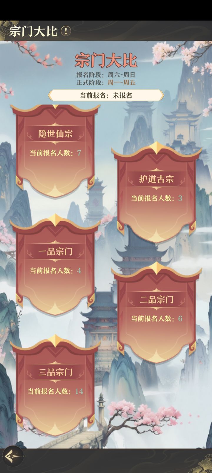如题,宗门大比还没报名却报名不了