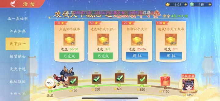 天下归一白嫖现在什么进度,拿不到锦囊了