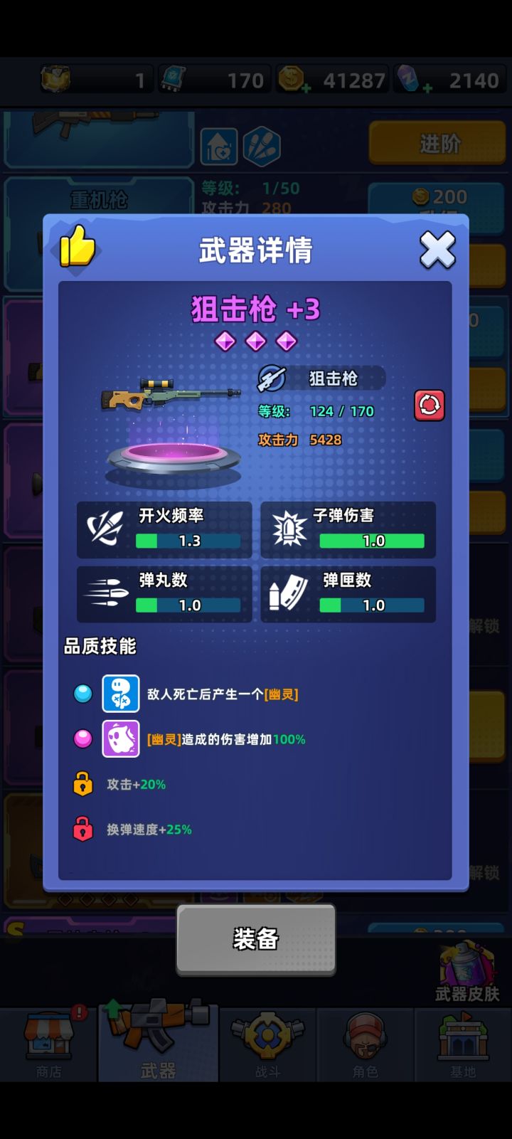 狙击枪最大的特点,其实就是自带的幽灵属性,前期真的可以支撑住群殴,完爆前期没有几级的aoe属性,如果选机枪类,前期没a到好的群攻属性组合,很容易崩盘,中期也只需要换弹速度加惩戒,搭配个血量加伤害就行,中后期补个鹰眸加子弹特效,把冰冻随便补一个,和诅咒30%加伤先点一下,增加伤害就行,后期补个杀怪5%换弹速度就行,没有也无所谓,同等等级情况下机枪类根本没办法与其相比,性价比极高