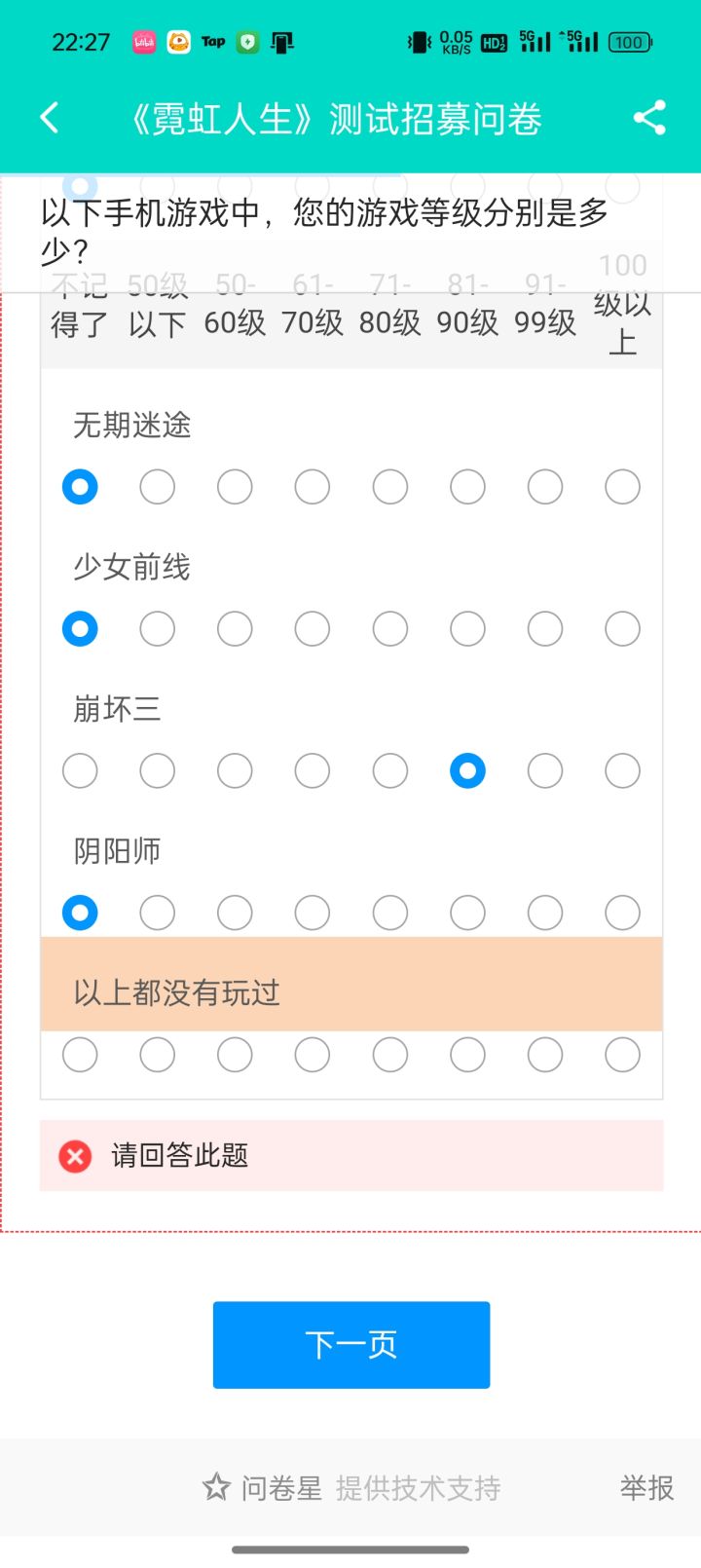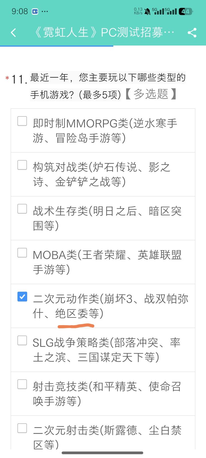 这招募问卷做的真是一坨,问我玩过哪些就别设上限,只准人玩过五种游戏是么,还非要人填没玩过的游戏的游戏时间和等级,搞笑吗