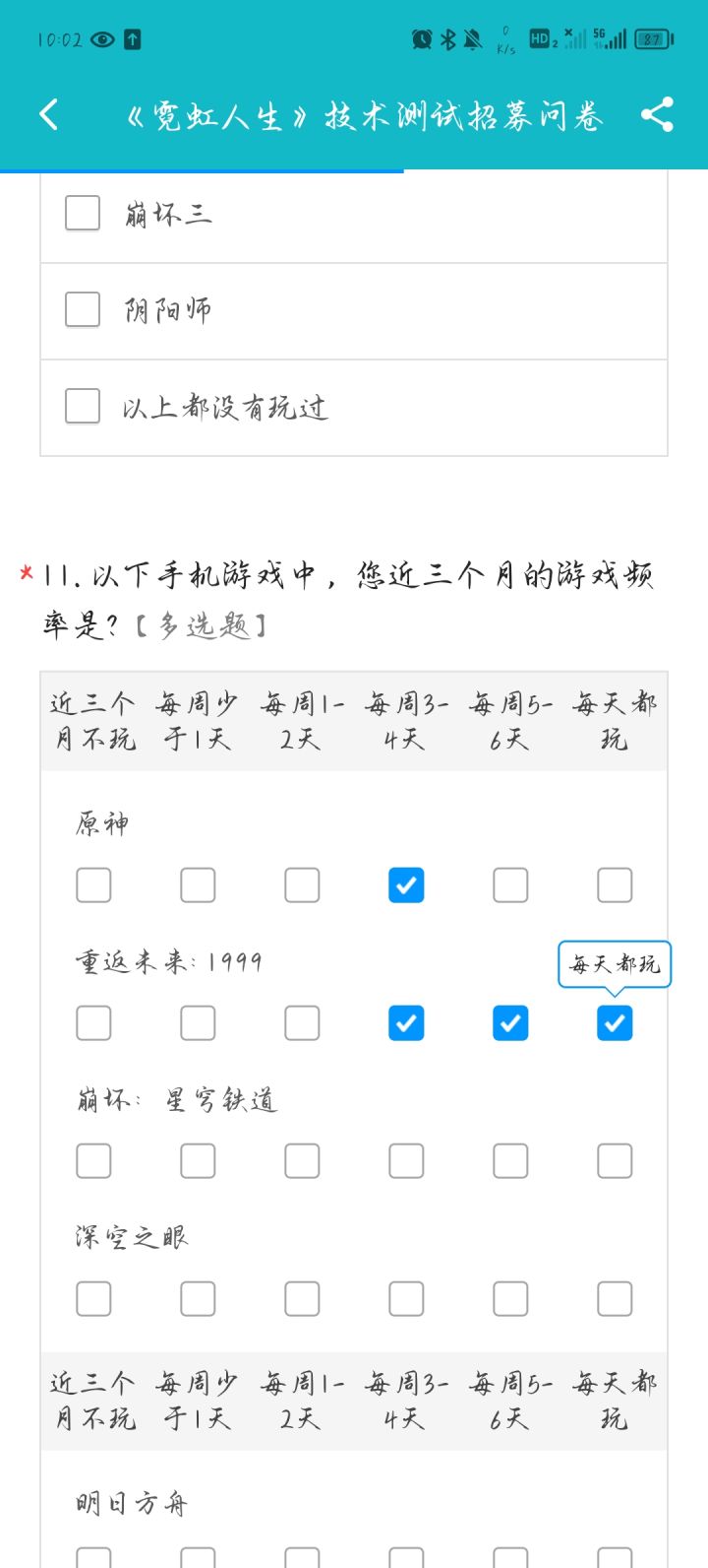 兄啊,问卷没那么难做的罢()甚至一个空能选好几个,没玩过的游戏问你玩多久,多少级#宝藏厂商