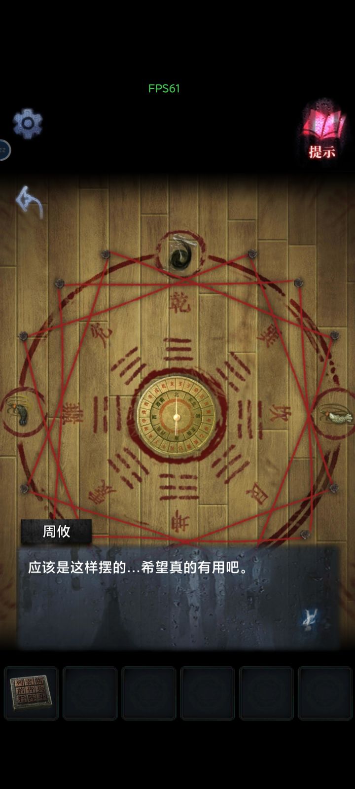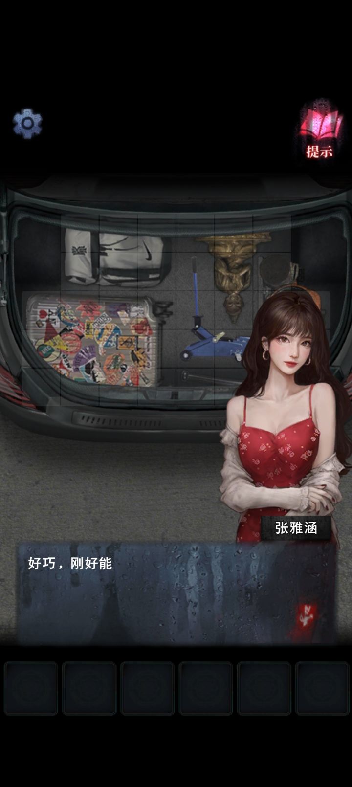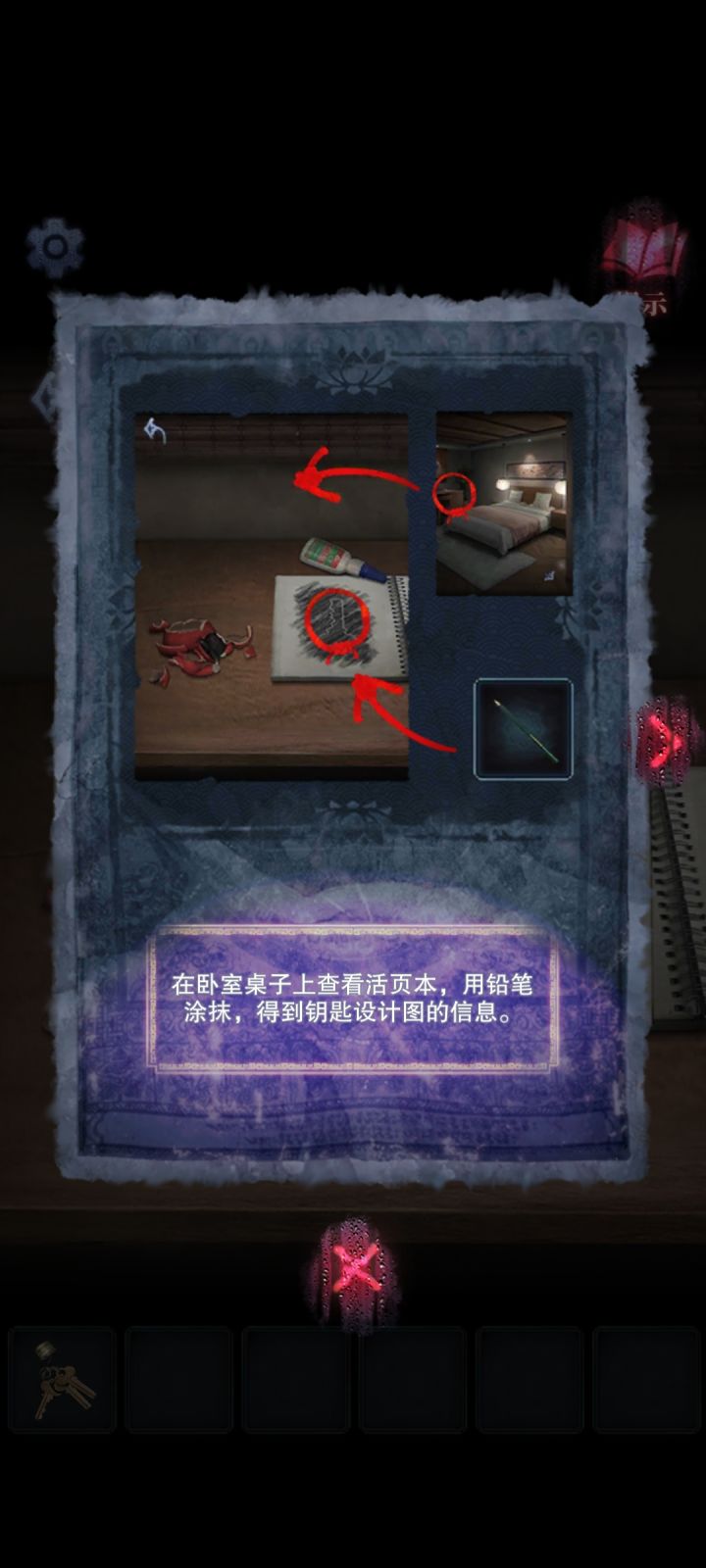 序章1.(民宿-房间)点击打开桌子下方的柜子,获得【红酒杯】、【红酒】、【开瓶器】和【彩灯】2.把【彩灯】装饰好3.点击床头柜,放上【红酒】和【红酒杯】;用【开瓶器】打开,倒上红酒第一章1.(西莲服务区)在乘客手中获得【钱】2.(便利店-右)点击去到便利店,触发剧情。在柜台的糖果盒里获得【糖】3.点击柜台上的烤肠机,获得【烤肠夹】4.插入电源,打开开关;用【烤肠夹】夹烤肠到烤肠机中