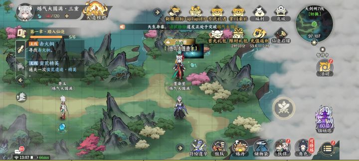 刚进来的时候,体力是120,我吃了一个体力丹,又领了今天的40体力,走一步路,卡一下就变成107了