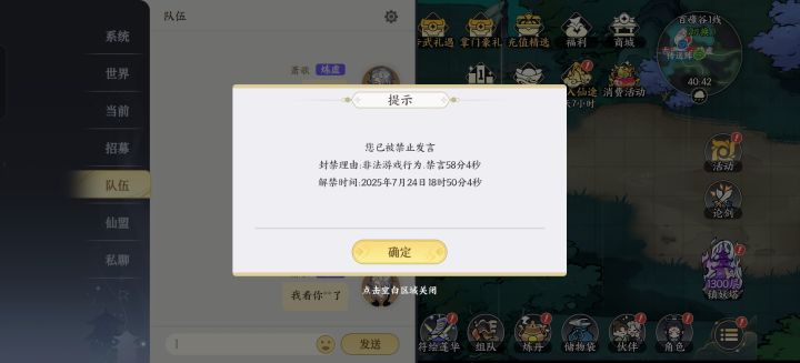 被禁言原因 就是测试两个字被屏蔽