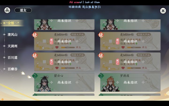 服务器:御宇游虚Bug内容:道友界面显示出死亡的道友(还是四个,如图一,不知道就是这样还是bug),选择时选项可以出现多个亮的(附图,如图二.三)最后的祝福:愿 掌门下山 越做越好!