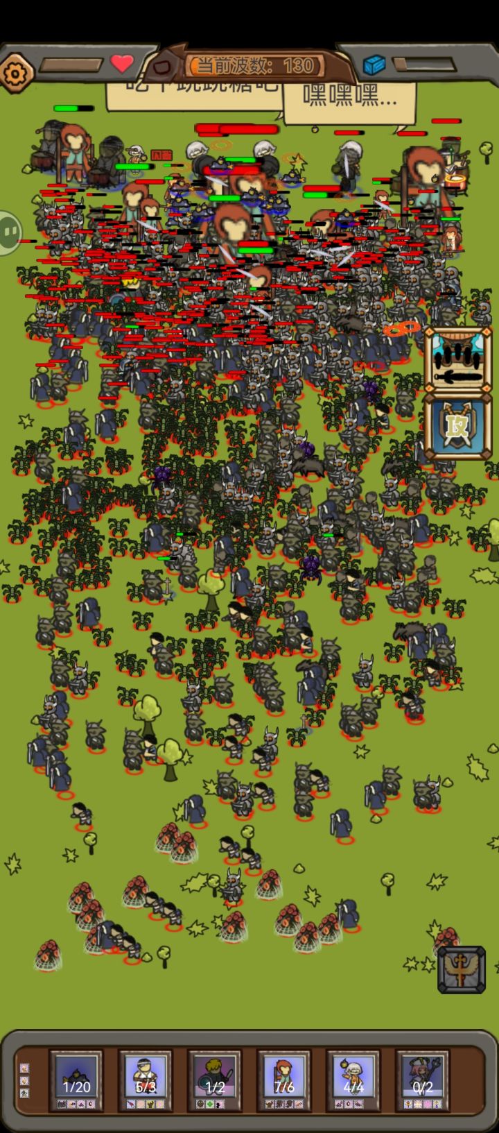 枪手和士兵,性能优越,输出不俗,总人数最高48人,弹道速度极快,有aoe技能,会后撤步,炸弹哥还能给枪强化射速。棍哥,枪手和士兵,幸存者三件套绝对是无尽模式首选单位。 . 老鼠,拥有高达50%格挡,极短训练时间,行动速度极快,有aoe技能,炸弹哥配合音响还能屯老鼠,当之无愧的究极填线宝宝。 . 音响,2000血量,全图号角,仅仅四秒的训练时间,死了有高额自爆伤害,当之无愧的最强耗材。 . 阵容输出