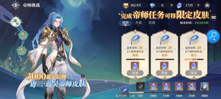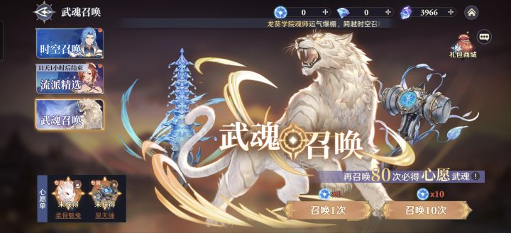 今天实际是第四天了,但我还是想在24点之后记录前一天的进度,算是一个纪念吧,这个系列只打算做前七天,刚好新手七日目标活动结束。抽到了奥斯卡,这下阵容就只差唐三一人了,小奥的回血能力还是挺强的,给队伍减少了一些生存压力。然后就是开启武魂召唤了,开启武魂召唤之后我看了下召唤所需材料“武魂水晶”的获取途经,非氪金途经貌似只有噩梦副本、商店魂晶购买和新手七日目标的特惠礼包了(可能还有其他),个人感觉获