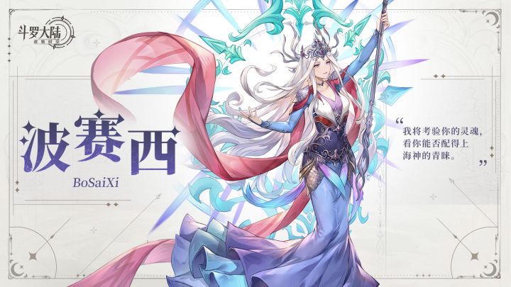 (游来游去)传承者们好呀!蜘蛛娘又带着最新的魂师档案来啦ε===(っ≧ω≦)っ据说在海神岛上,住着一位神秘的女子,她自幼与大海结缘,如同海神在人间的化身。没错!本次档案要介绍的人就是——波赛西!波赛西自小生活在海神岛,她天赋异禀,自幼便接受着严格的修炼与考验。凭借坚韧不拔的毅力和卓越的天赋,她成功通过了海神给予的顶级八考。最终成为海神岛大祭司,坐镇海神殿,与七大圣柱守护者一同守护着海