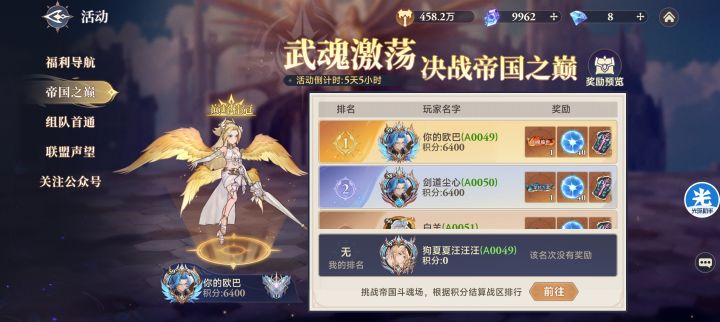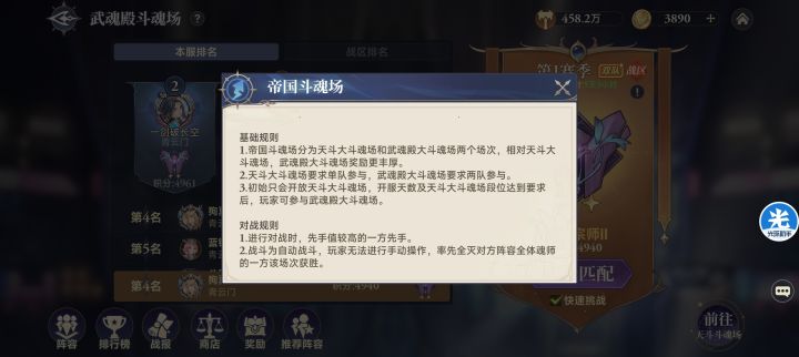 活动上写的帝国斗魂场排名奖励,结果帝国斗魂场分成两个,天斗和武魂殿。武魂殿斗魂场是2队的,奖励更好,理所当然的大部分玩家和氪佬都选择了武魂殿斗魂。结果这个活动写的帝国斗魂场但只计算其中天斗斗魂场的积分。导致活动排行榜的奖励全是战力低没进武魂殿斗魂场的人分了。氪佬连称号都拿不到。#