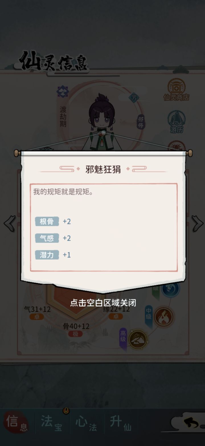 #新手攻略 萌新入坑重点汇总1.潜力决定可以游历的时间和仙灵的境界,每个境界都有一个潜力临界值,当突破时仙灵潜力大于临界值时可以多次突破且一次比一次成功率高,但只有第一次突破就成功有加额外属性,反之则只加相对于第一次突破就成功加的一半声望,所以当突破成功率没有100%时最好用渡劫丹2.仙晶最好是全部用来抽人物,每抽一次加一点积分,满100点可自选红色伙伴,优先选择叶凡3.商城广告必看,除了