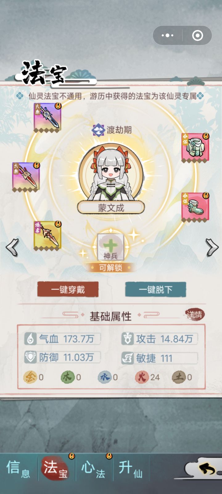 请问大佬这个能主力养了吗? 角色装备有三把剑,如果可以的话神兵带什么呢?没出七天的新区,谢谢!!
