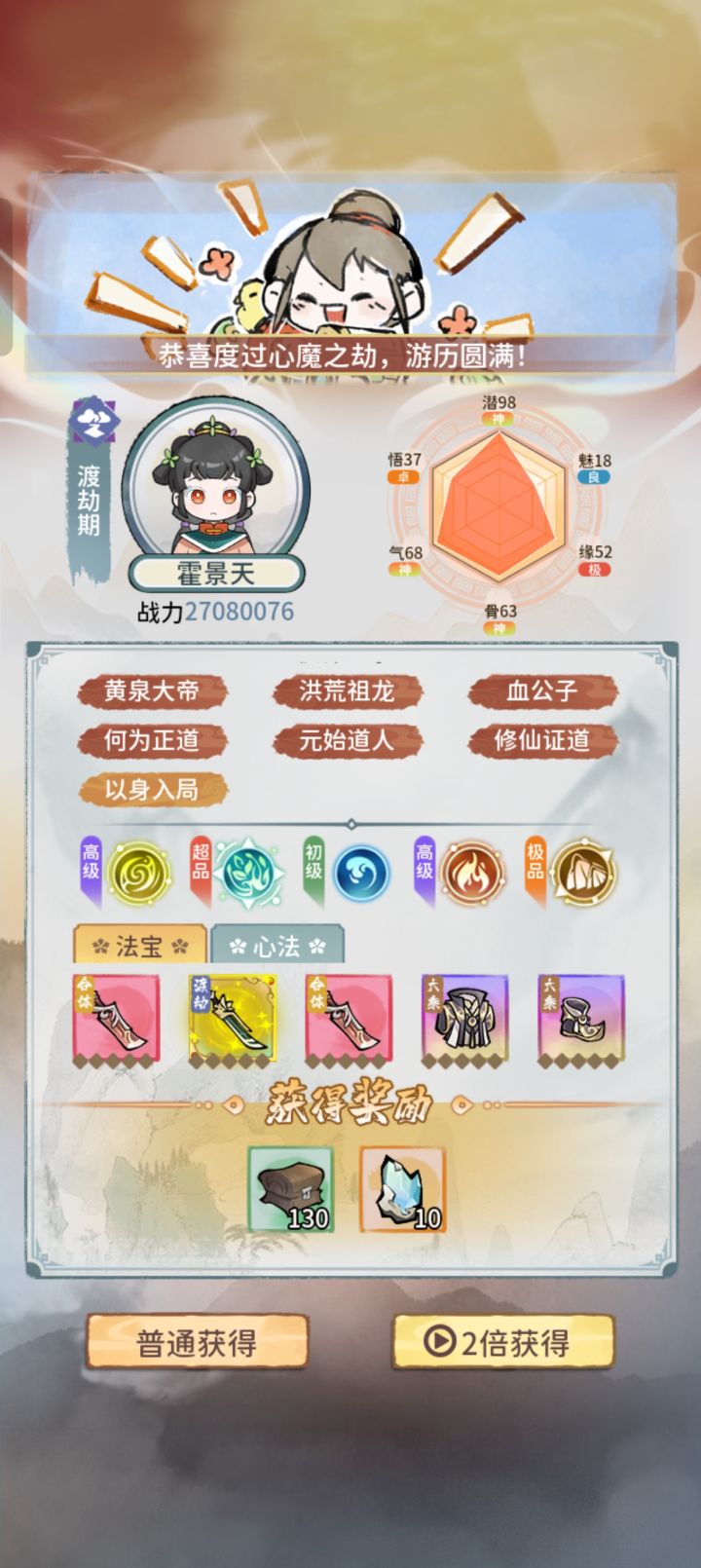 为什么你们的潜力都是60多,70多就行了,而我93,80以下,我渡劫都是失败