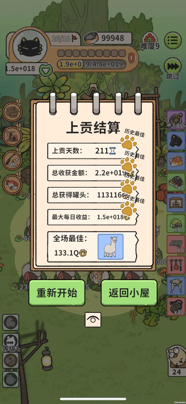 玩了两个星期,全成就了。简单分享一下高分攻略。字数有点多,就分两篇来写了。--------------------------------------------- 第一个是 爱的小屋+鼩鼱 无限繁殖流。玩具选 纸箱子, 木鱼 和 激光笔,猫神选 吉格斯,种族选 鼠兔家族。开局动物选鼹鼠,道具选 密集恐惧治疗仪。然后动物只拿 鼩鼱,尽快升级 鼠兔家族的天赋,道具找 露营帐篷。其它看情况拿或