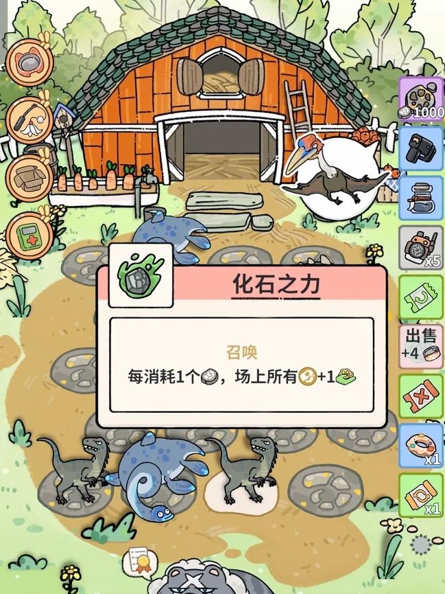 前期简单过渡三四个阶段,用小盗龙刷到1000化石,后面就无脑能过10个阶段,然后开启无尽用风神,霸王龙,泰坦巨龙刷化石刷钱之后也继续用小盗龙,每次都剩一个小盗龙,再刷一个小盗龙,下一天就有两个小盗龙,然后移除一个,化石两倍给下一个小盗龙,不断x2,指数级增长,实在不想刷了,把小盗龙移除,化石全给泰坦巨龙然后一定要把霸王龙也移除后面泰坦巨龙身上有多少化石,每天就有多少钱还有道具可以翻倍(场
