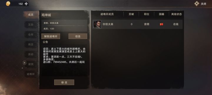 设定:废土下最大的城市避难所,由蔡徐村逐渐发展演变成废土上最大的城市要求:要活跃一点,三天不在线t,多捐物质。进Q群:799452485,共测后一起玩
