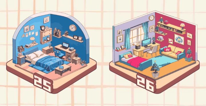 后面有一些好离谱,比如一个房间三个灯,要么厕所里面放大板凳而且东西好小,全靠一点一点试,感觉前面还是好玩的