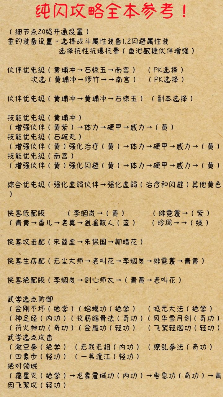 装备方面混元境连击暴击反击吸元250+ 吸元越高越好侠客如图 三号位可以替换梅友柄主战伙伴选着拥有爆伤增强和增强治疗的两回合伙伴优先,任何伙伴都可以我们不靠伙伴打输出只需要他的技能武学如图 奇功可以换绛天神功 内功可以换高阶六合,每个人的伤害不一定侠道两孔:无情和利欲熏心 三孔补武痴势力加明教选1和3技能有不懂的兄弟可以留言#无名之辈攻略