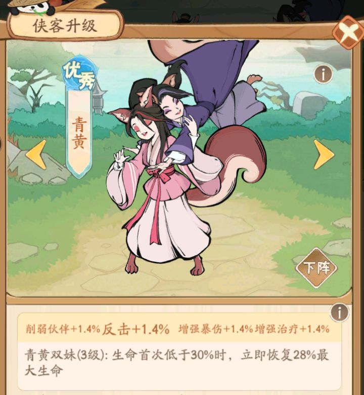 作为纯闪流的进阶玩法反闪流,他的优势在于依靠反甲搭配小宝的技能,让狐狸快速启动(伙伴伤害是无法闪避的)伙伴方面:狐狸天赋不够突出的情况下可以去选择双狐狸➕石惊玉/修竹或者单狐狸➕双续航狐狸天赋建议三伙伴增强>削弱治疗>威力>伙伴削弱石惊玉/修竹天赋建议 增强治疗>伙伴增强>伙伴削弱>削弱治疗侠客方面在纯闪流的搭配下去做进阶,李烟岚还是咱们的不可或缺,去搭配小宝,做到纯闪的进阶闪反,三号位侠