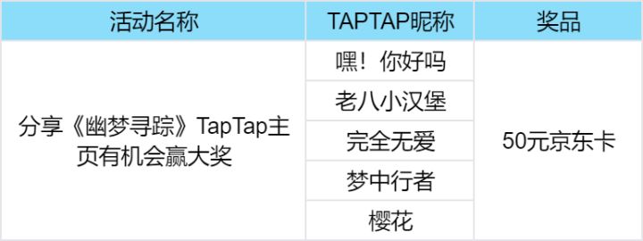 【已开奖】预下载开放 | 分享幽梦寻踪TapTap主页有机会赢大奖~