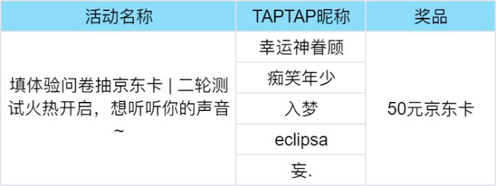 感谢郡主们在测试期间的支持与反馈,接下来小幽将要公布本次活动的获奖名单啦!恭喜以上获奖的郡主(非常激动地拍手手!!!!)请各位获奖的郡主于8月28日前凭中奖账号昵称主页截图,前往官方Q群:534561186 联系【幽梦-寻寻】兑奖~逾期将视为放弃奖励哦!二轮测试已进行一段时间,感谢每位参与测试的郡主们!虽然只过去了短短两日,但我们还是收到了许多郡主的体验反馈,玩家讨论群内的每一句话我们也努力