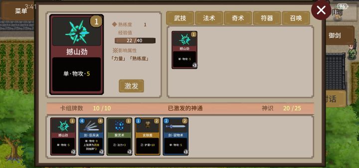 开局炼丹炼器赚灵石,赚钱的时候顺便把太宵宗好感刷了把掌心雷学了,钱够五千左右去商店学流光印然后把灵气上线的丹药吃满五颗就行了卡组带两个流光印,两个掌心雷,两个巨剑术,一个奇书回蓝,五个拳头(体术都可以触发巨剑术的抽卡效果流光印是体术)练气期这套卡组除了500血的猴子和两只拧兽打不过其他随便打。