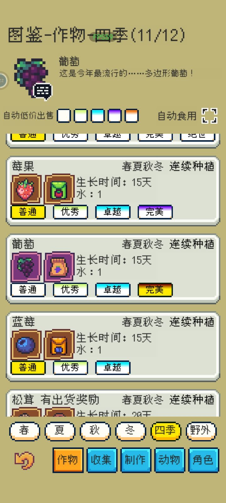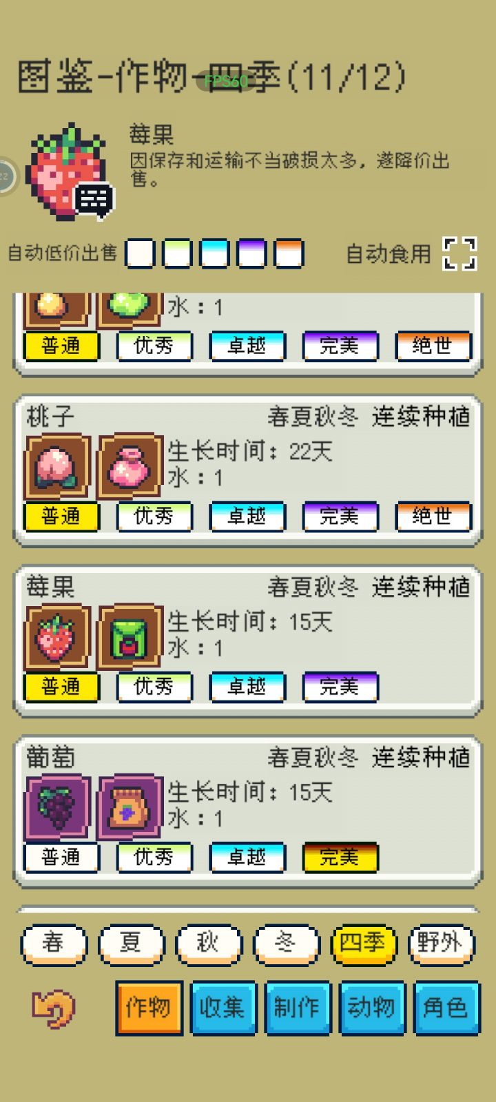 各位大佬求助!神的很无助了!!如题,我冬季种植的葡萄、香菜、莓果都是品质比较高的做物,就这三个,一收获就没了!但是我并没有开自动贩卖!!我发现卓越品质及以下品质的农作物就能正常收获,完美及以上品质的种子种了农作物就直接没了但是buff获得的种子还是在的这是为什么啊?是冬天不能种还是对土地有要求啊求救!!