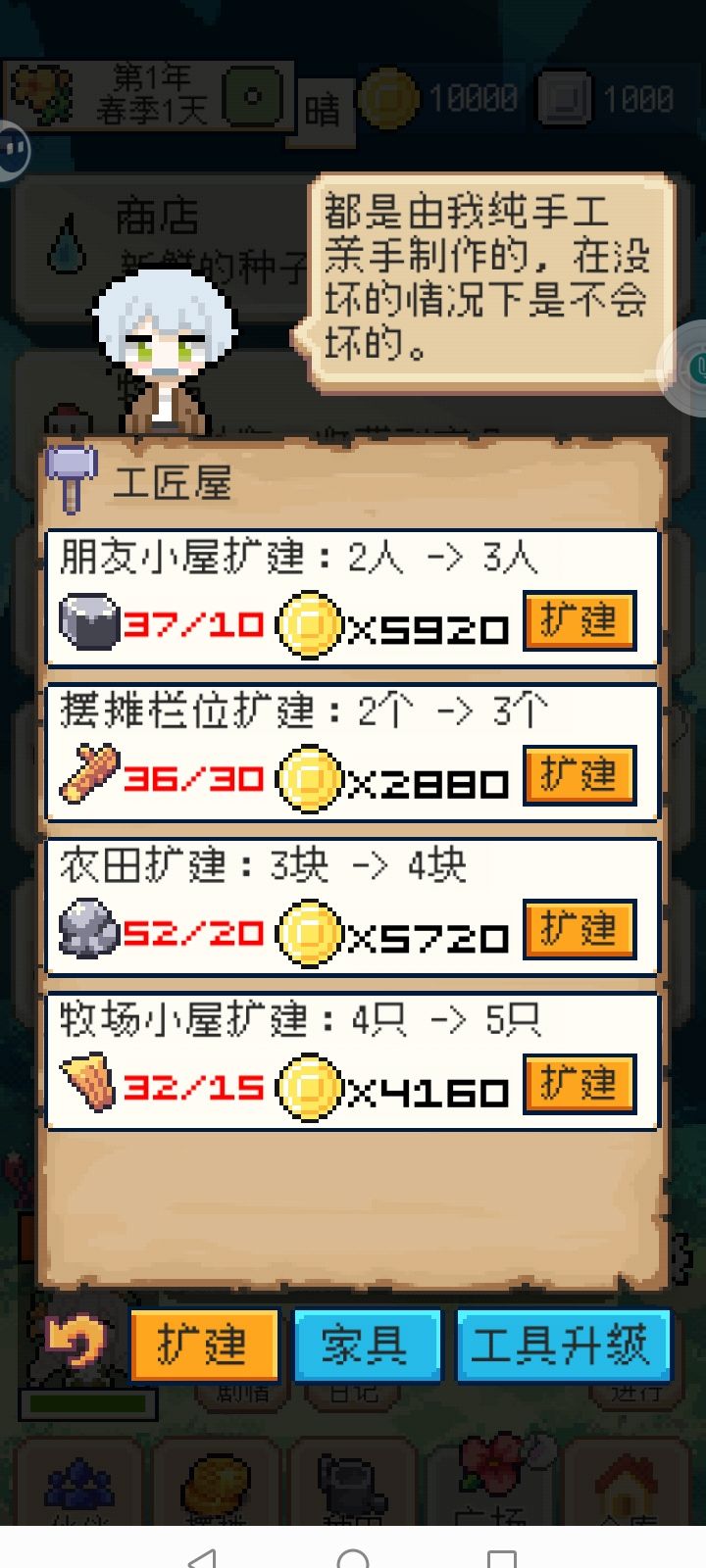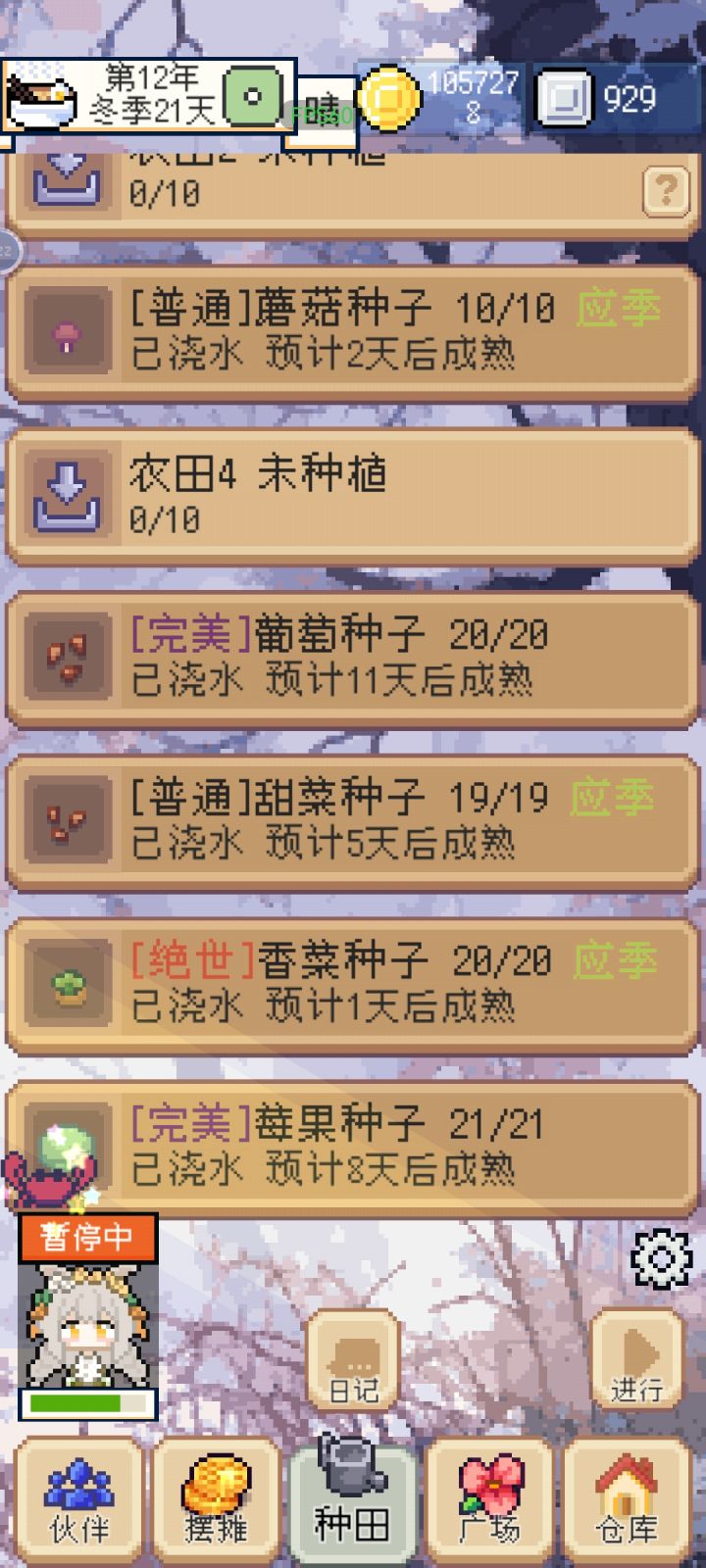 计划的项目是否在进行完全没有显示,加个进度条呢?种地能加几个种子应该有提示是否是最大数量。农田干涸和湿润并不明显。
