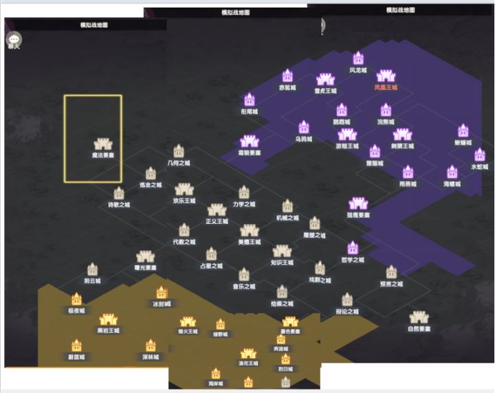 相信昨天很多小伙伴已经开启了模拟战了,花了点时间对游戏活动玩法做了一个详细的攻略,如有疑问或者更优解可评论私信轩仔~首先了解地图及其游戏玩法【模拟战地图】截图拼的有点没对齐,但是看得懂哈哈根据双方阵营选择可能出现城池不同,进行为期7天的攻防战,战略讲究所谓的兵马,粮草,也就是游戏里需要获得的矿石和实物,如下矿石:用来强化队伍基础属性(攻击,生命百分比)提升比较明显有用和游戏内载具的移动速度