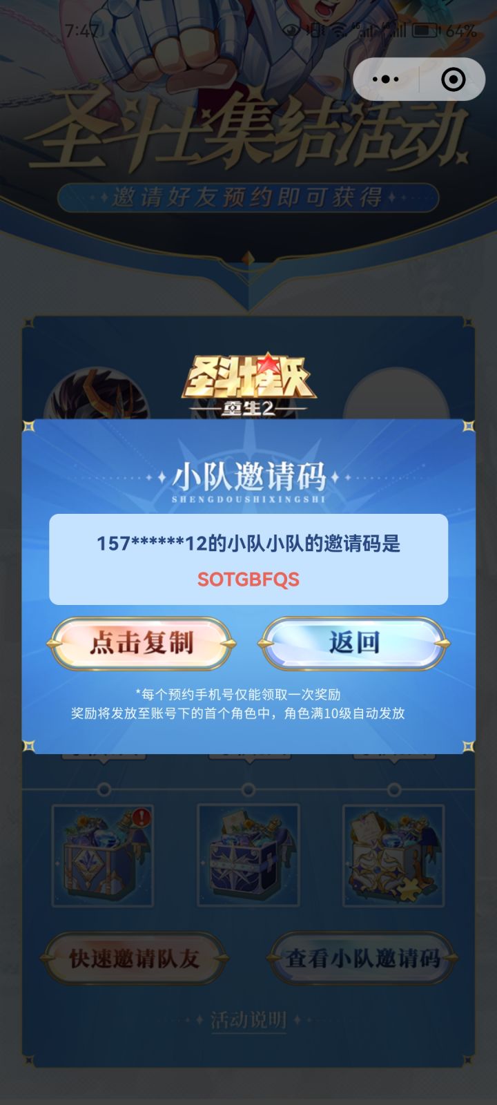 来不及解释了,快加入我的小队!《圣斗士星矢:重生2》公测豪华大礼包就差你一个,速来领取!>>>https://h5.mobage.cn/seiya2/challenge/s/bu783