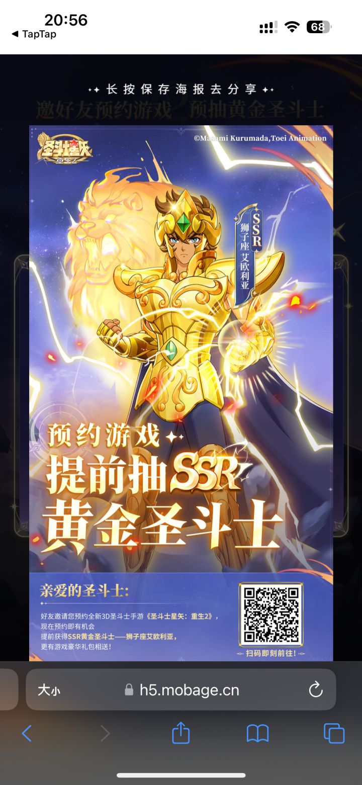 来不及解释了,快加入我的小队!《圣斗士星矢:重生2》公测豪华大礼包就差你一个,速来领取!>>>https://h5.mobage.cn/seiya2/challenge/s/gm683