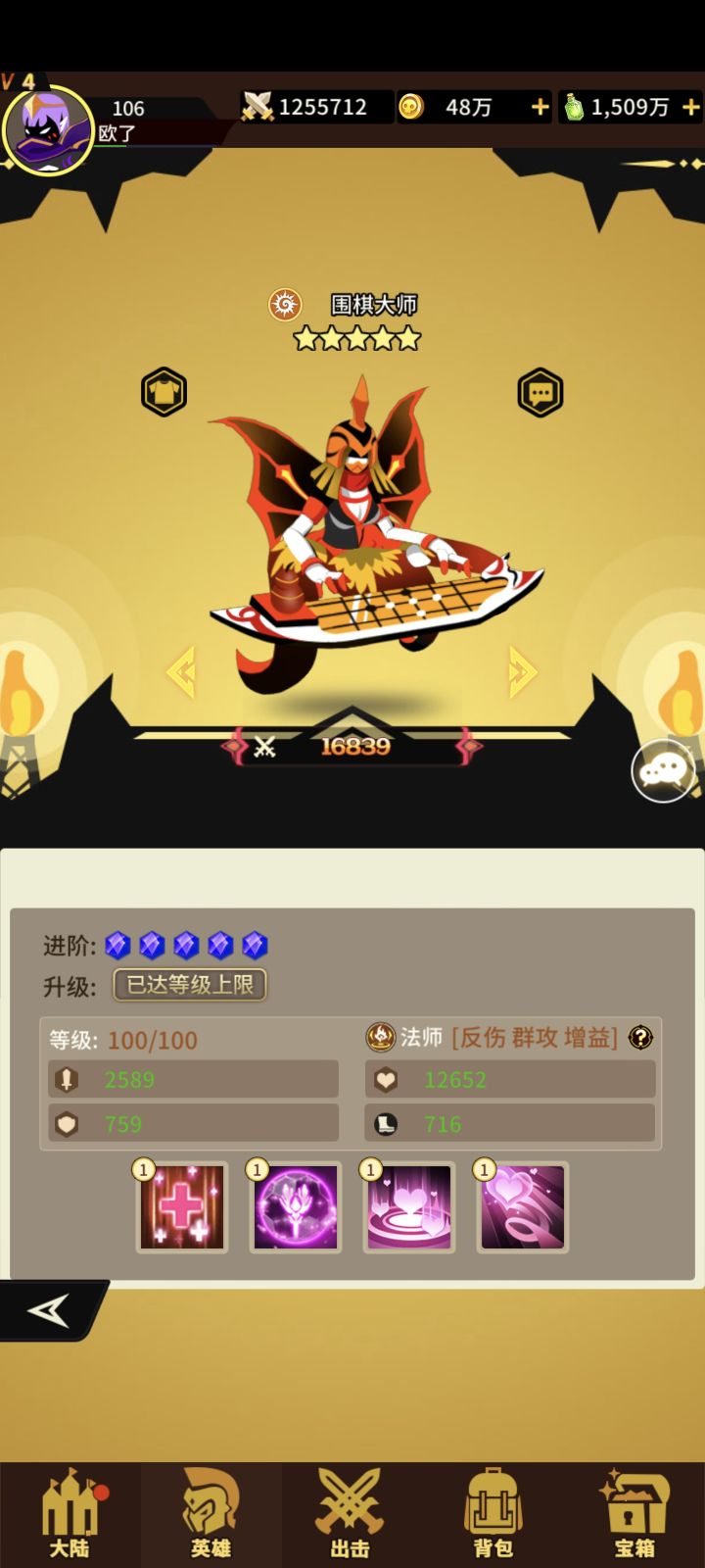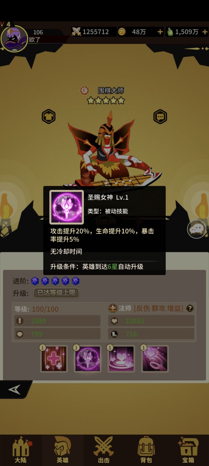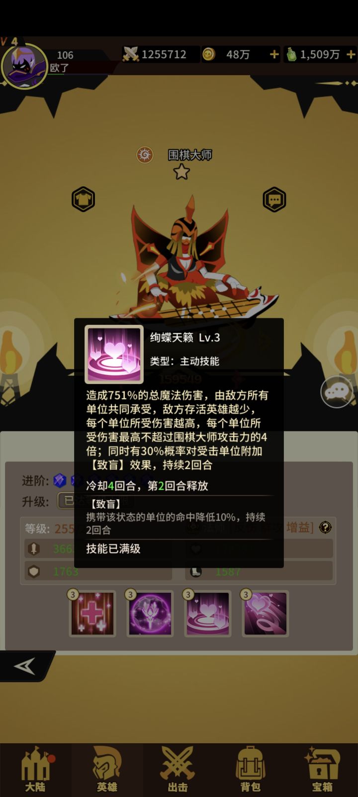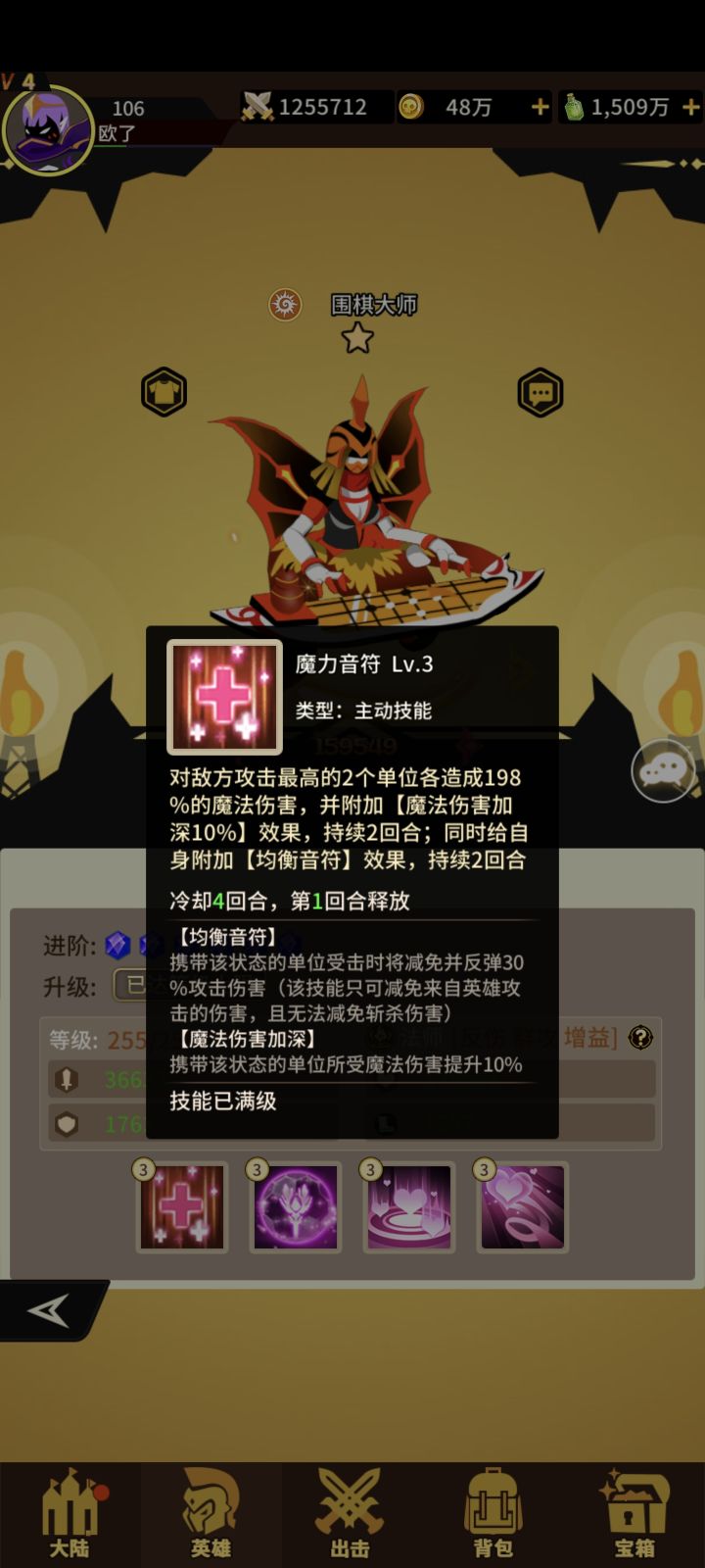 光系法师围棋!获取难度 难!抽卡看脸!宝箱看脸!不欧就老实的兑换吧!一技能打敌方攻击最高两个+伤害加深!二技能+攻击+生命+暴击三技能敌方共同承担最高不超过琴魔四倍伤害!存活越少伤害越大!满级还有概率致盲(减少命中)四技能+爆伤+攻击给所有光系队友+攻击腻害光系核心法师必养!#浅评一下