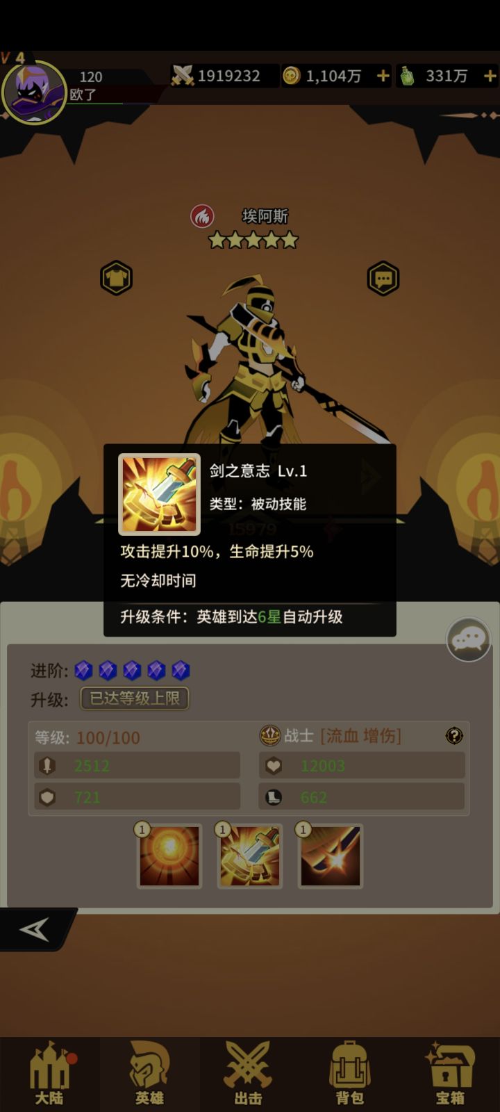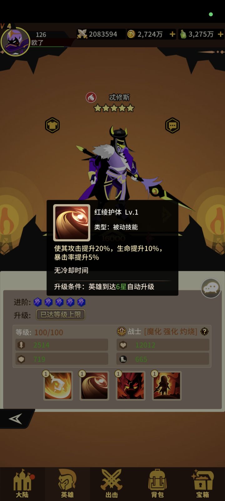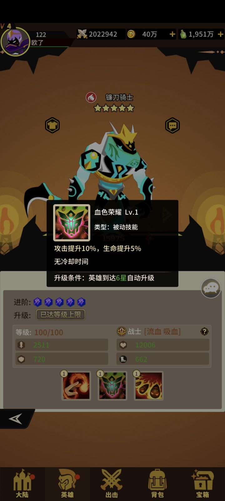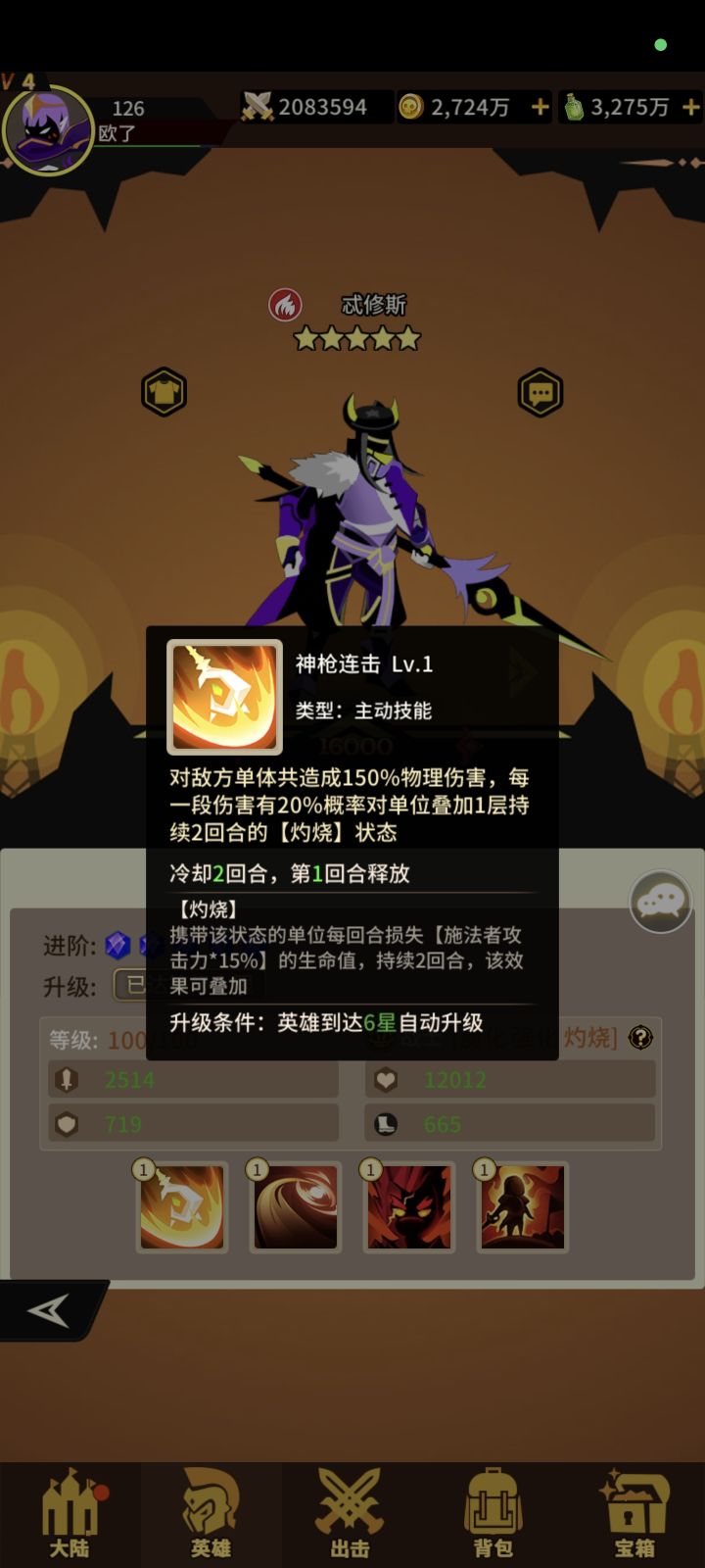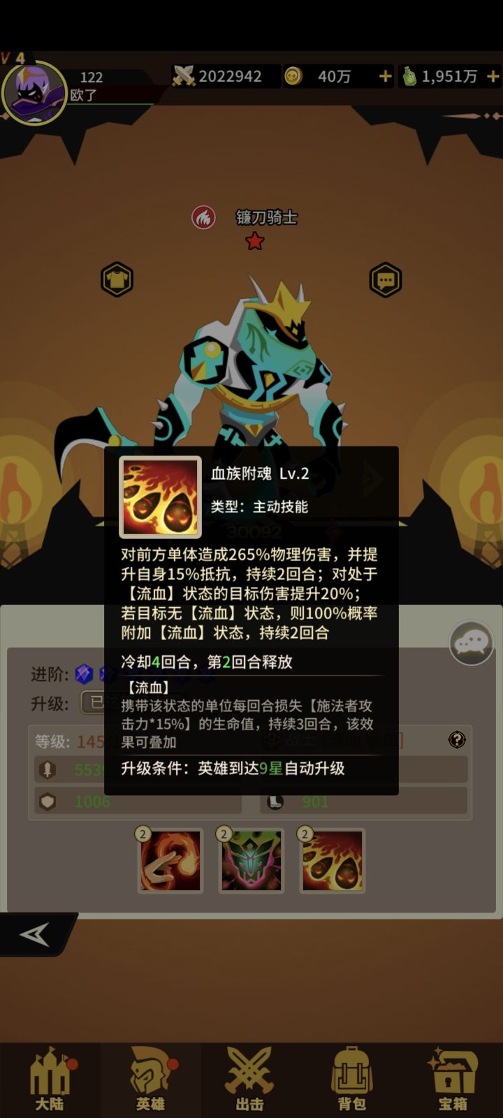 火系战士三技能!获取难度容易!抽卡+宝箱!一技能单体攻击概率+流血+恢复生命 二技能+攻击+生命 三技能单体攻击提升自己抗性打流血敌人伤害提升!狗粮一枚!#浅评一下