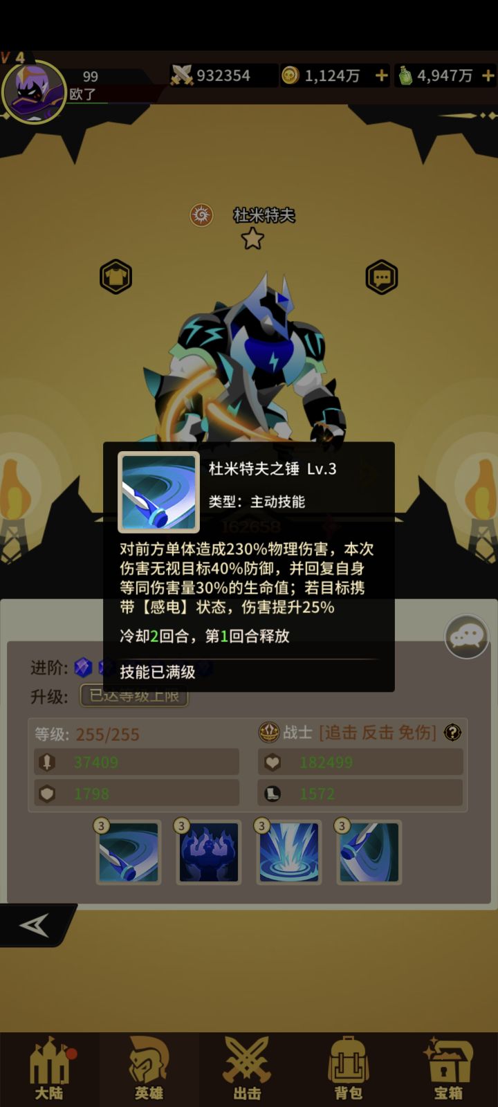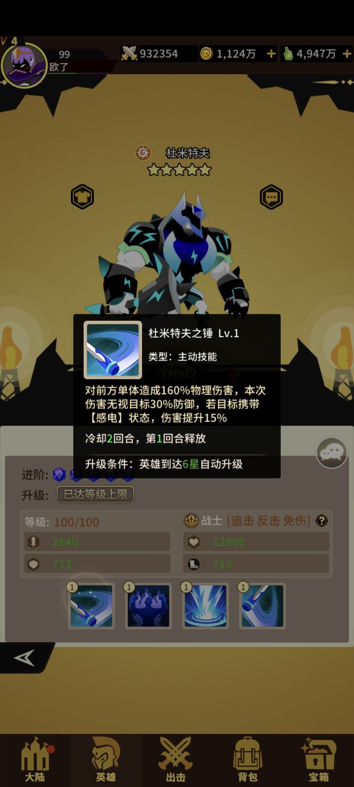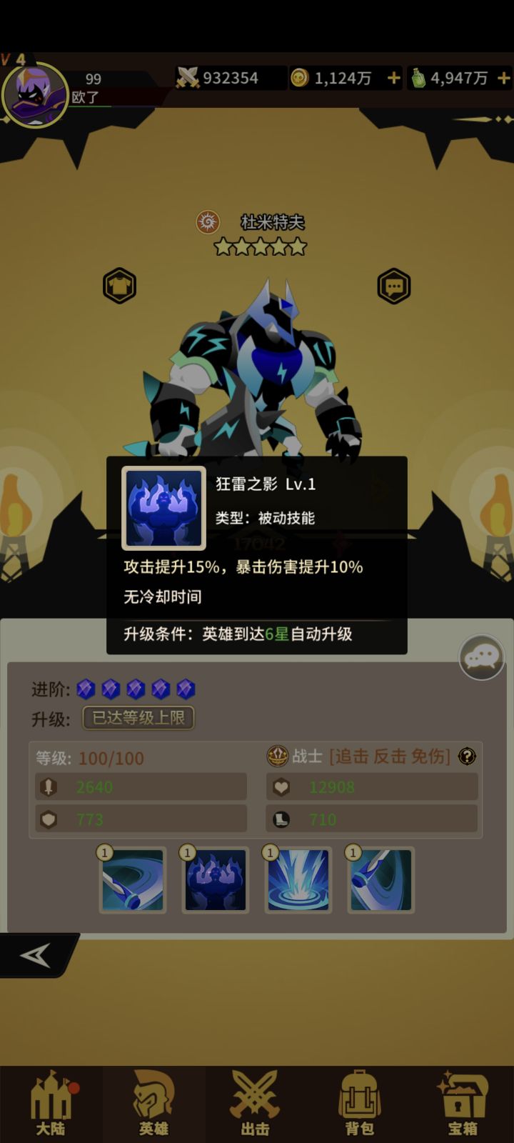光系战士杜米特夫!主反击!获取难度中等!抽卡+积分加宝箱+兑换!一技能打单体无视防御满级伤害恢复百分30血量!二技能+攻击+爆伤满级+暴击受到伤害不超血量百分30!三技能概率闪电追击!四技能受到伤害概率反击!满级百分百反击!光系必练!符文再弄个回血是不是就更牛叉了!#浅评一下