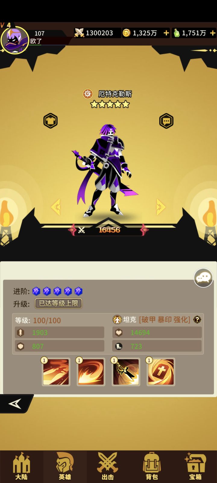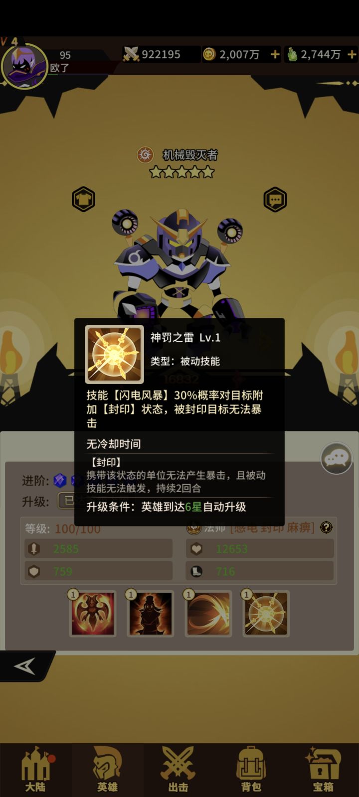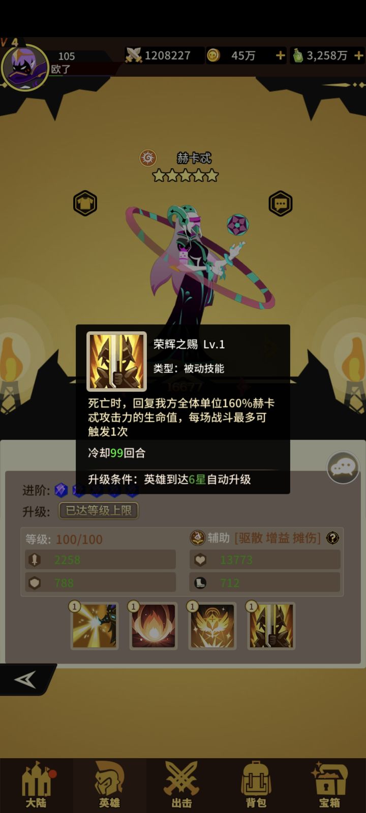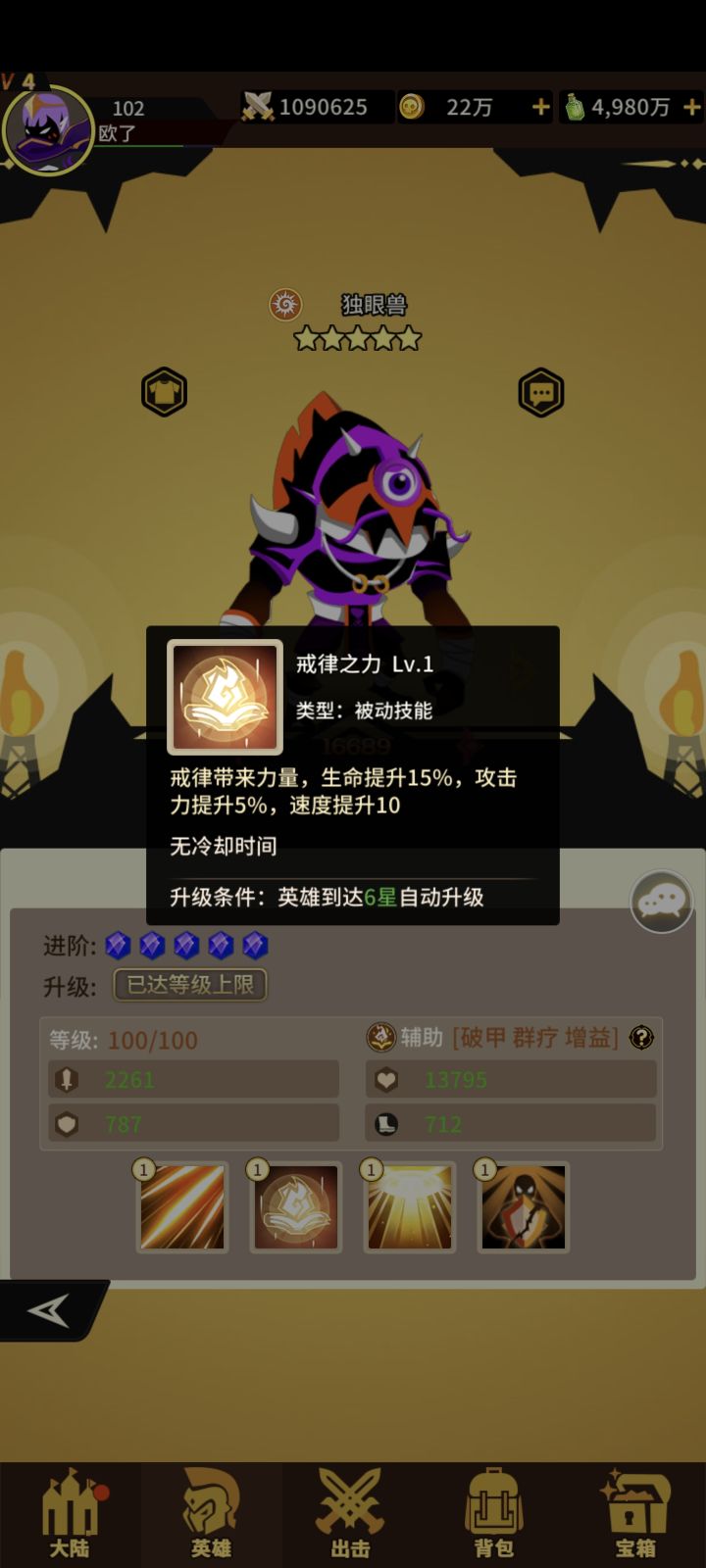光系坦克!获取难度中等!抽卡+宝箱+兑换!一技能随机打四个概率+破甲!二技能+生命+攻击+抗暴击!三技能受到攻击概率给敌人+神灵爆印(敌人暴击你给敌人伤害)四技能受到伤害概率给敌人+神灵爆印辅助100%+爆印 感觉这个就是为了挨打而生啊!还得被暴击才能🈶伤害!后期敌人暴击高应该还可以!个人不喜欢这样的英雄太局限了!#浅评一下