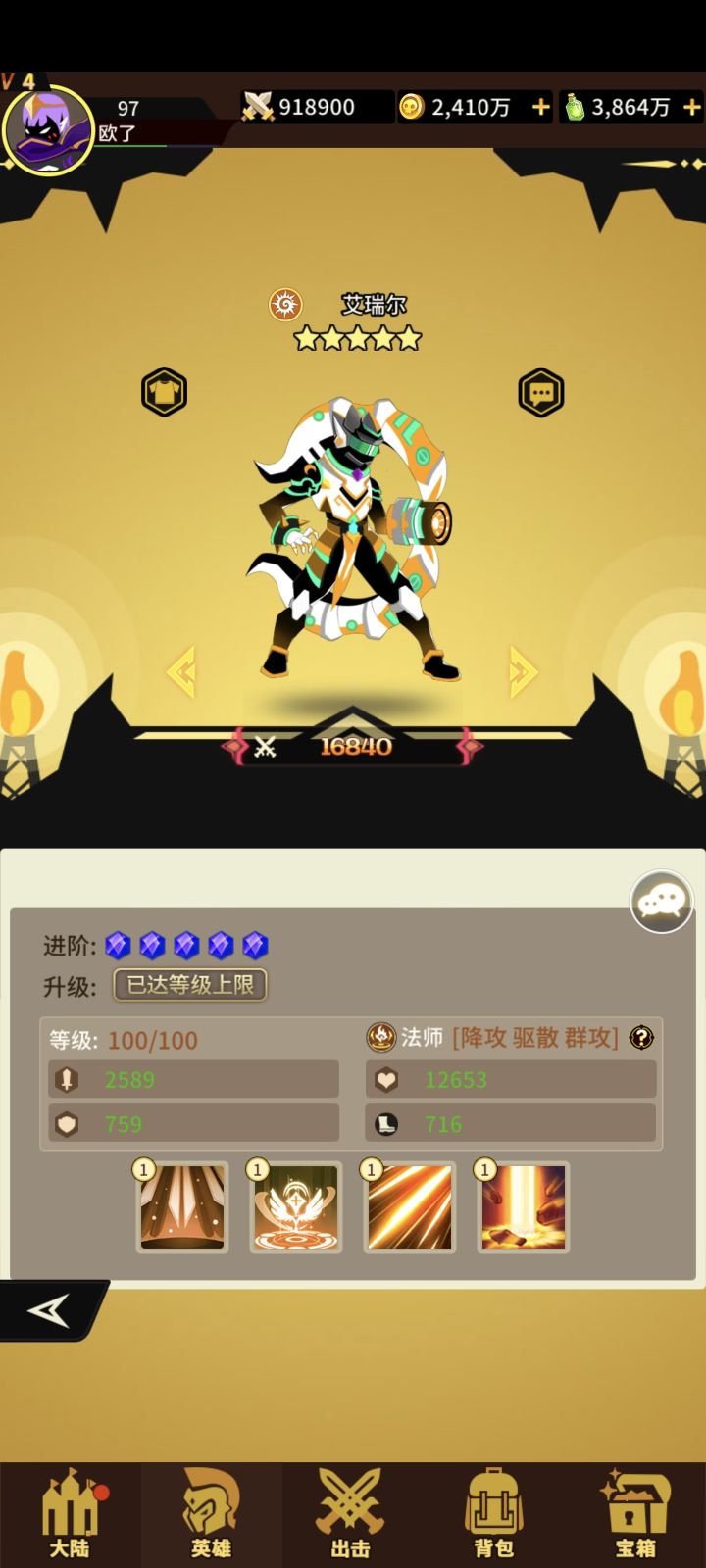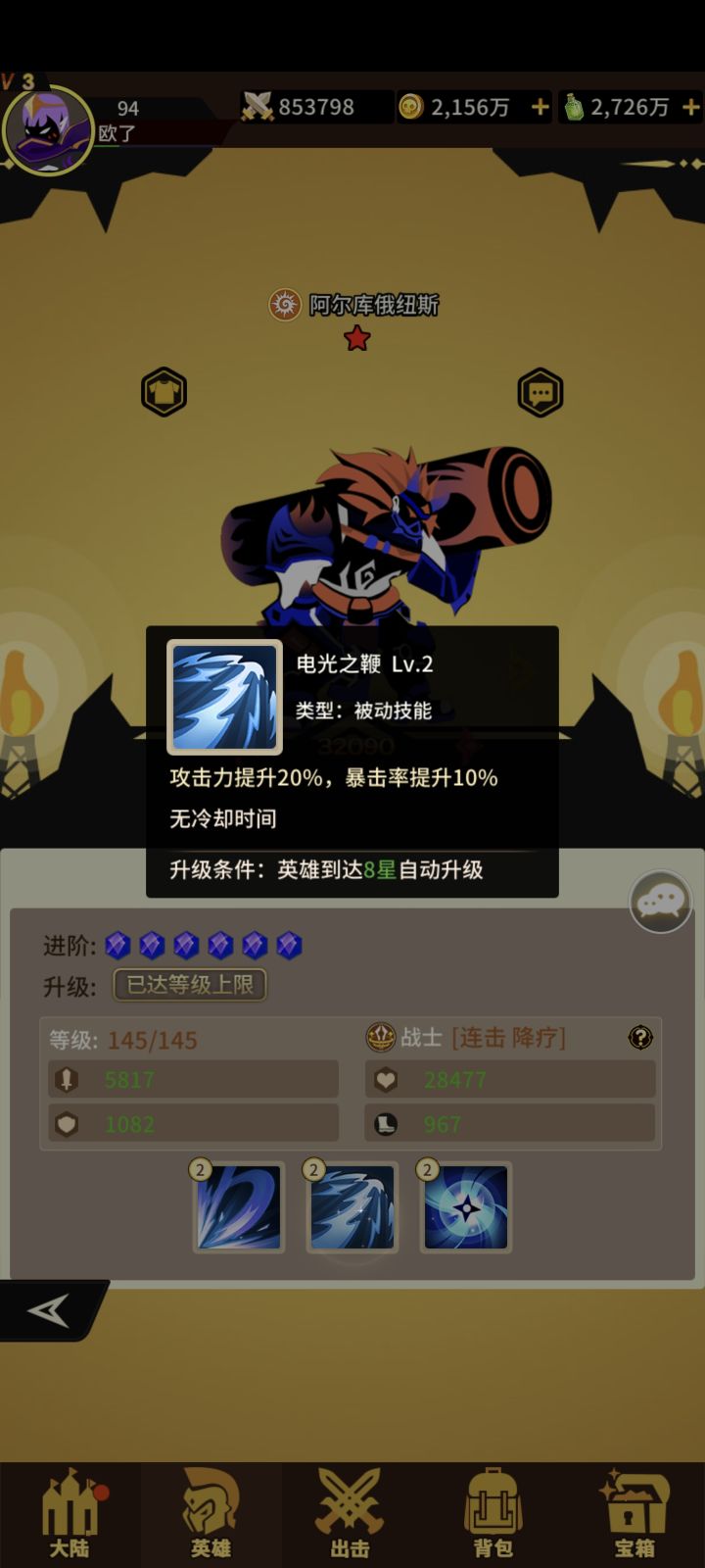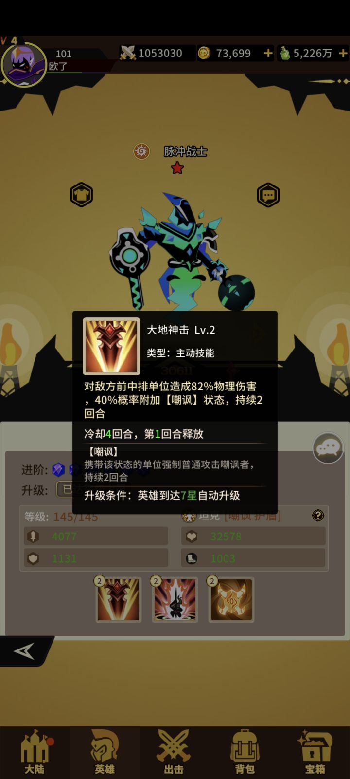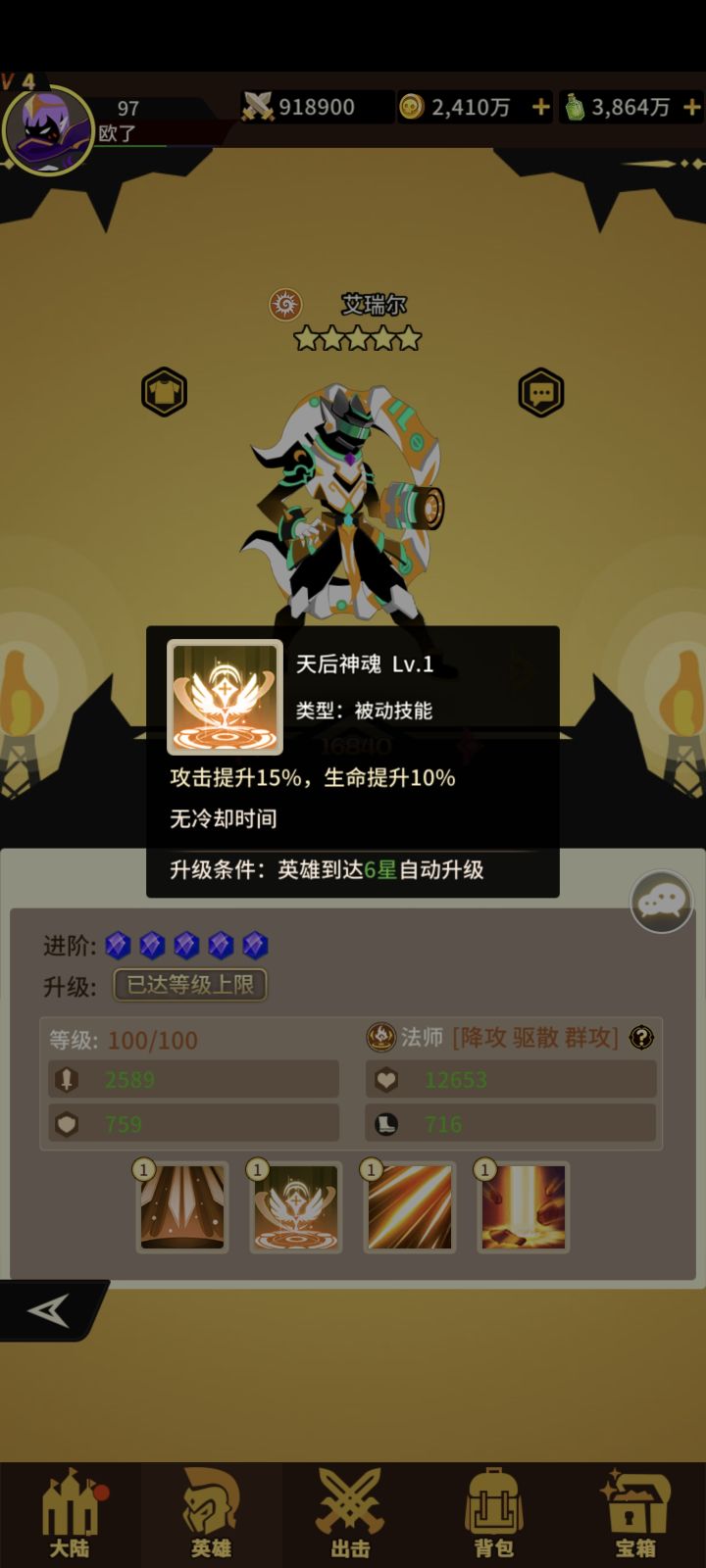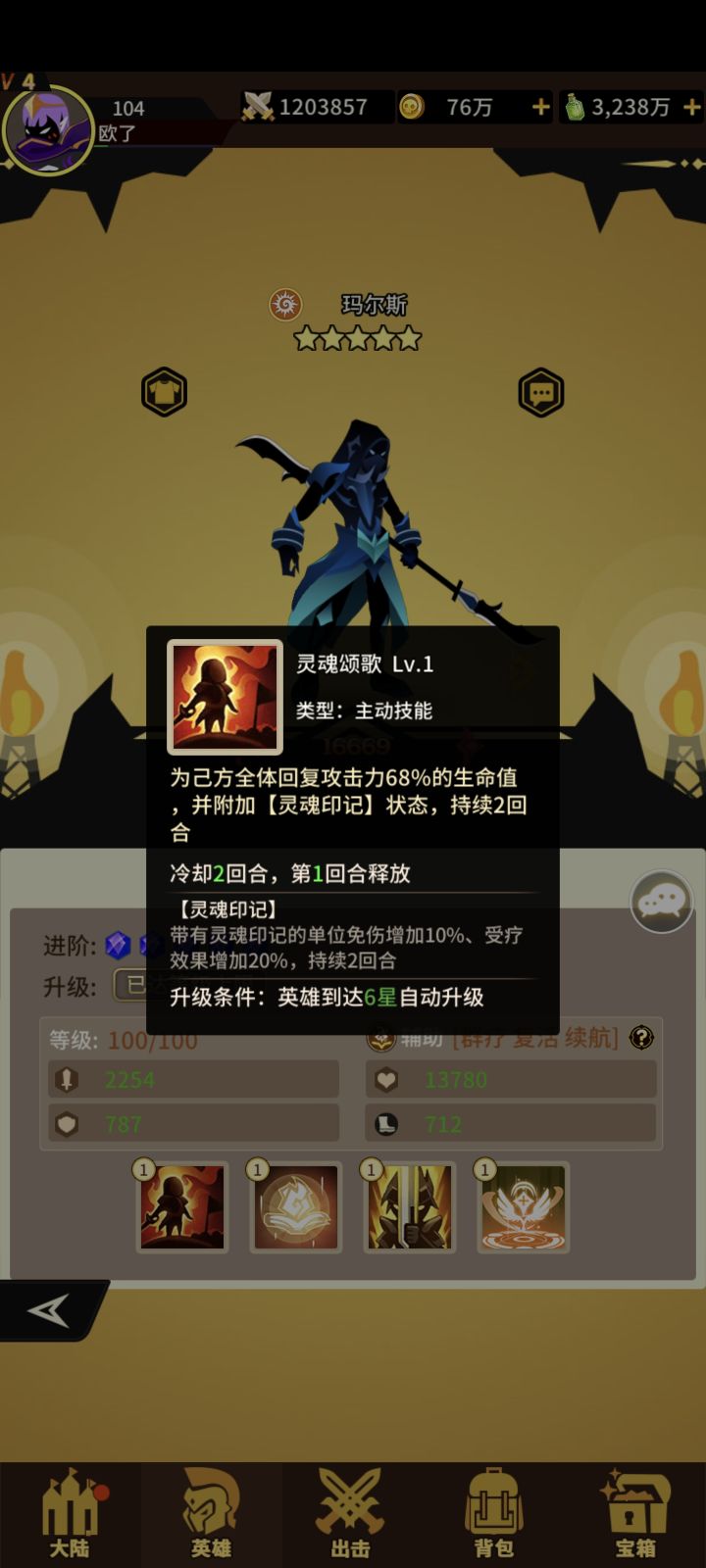 光系坦克!获取难度中等!抽卡+宝箱+兑换!一技能随机打四个概率+破甲!二技能+生命+攻击+抗暴击!三技能受到攻击概率给敌人+神灵爆印(敌人暴击你给敌人伤害)四技能受到伤害概率给敌人+神灵爆印辅助100%+爆印 感觉这个就是为了挨打而生啊!还得被暴击才能🈶伤害!后期敌人暴击高应该还可以!个人不喜欢这样的英雄太局限了!#浅评一下