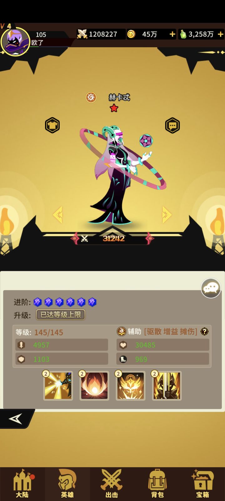 光系辅助赫卡忒!获取难度难!抽卡!兑换+宝箱!不易出!后期光系核心!一技能驱散三个队友异常状态+提升攻击 满级驱散四个+攻击+暴击!二技能+攻击+生命+速度 三技能全体魔法免疫➕灵魂结界(均摊伤害)满级结界消失恢复全体血量!四技能死亡恢复全体血量!非常🐂的辅助光系后期必养!#浅评一下