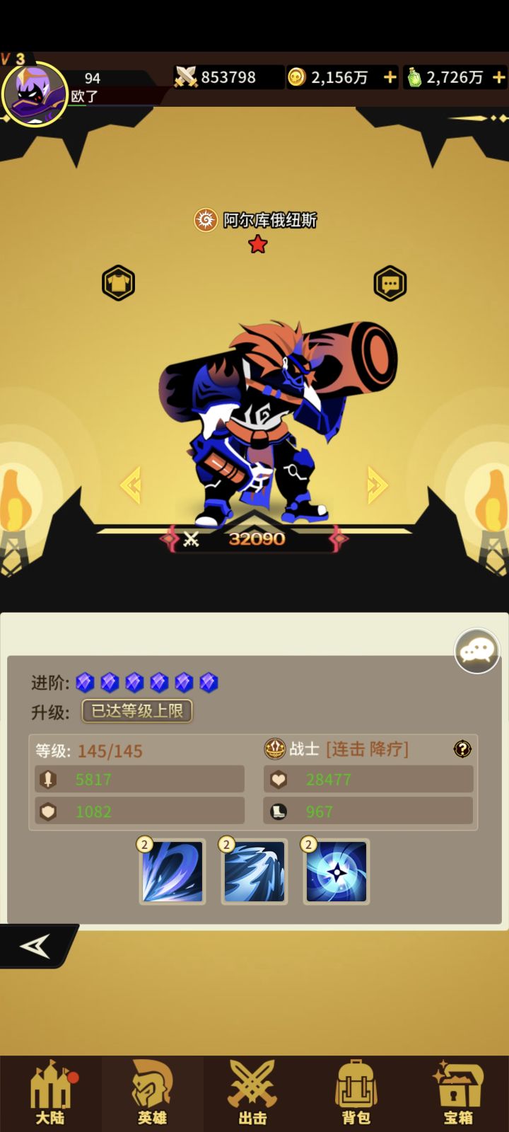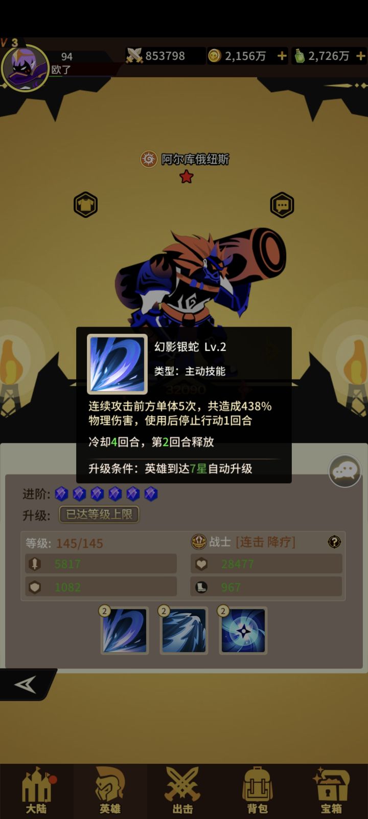 阿尔库俄纽斯光系战士!获取难度 易 抽卡就出!三技能工具人!一技能单体攻击5次停止行动一回合!二技能+攻击+暴击 三技能对前中排五次打击!连续五次攻击其实感觉挺狠的!不停止行动就好了!前期过渡用可以!#浅评一下