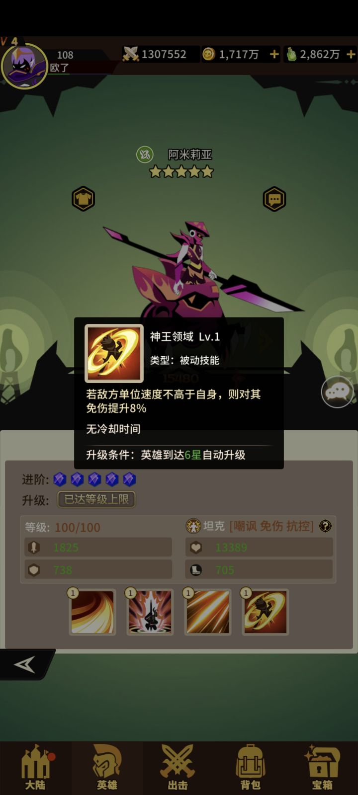 风系坦克!获取难度容易!抽卡+宝箱+兑换!一技能打前中排概率+嘲讽(强制普攻嘲讽者)二技能+生命+防御满级+闪避 三技能打前排单体+免伤 四技能速度不如自己就免伤30%!易获得升星快!前期不错的坦#浅评一下